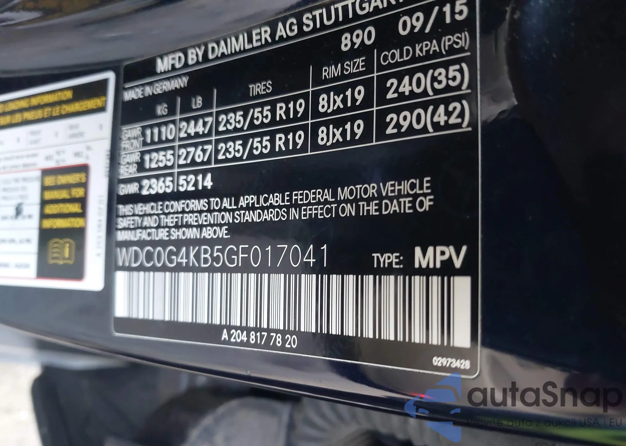• VIN WDC0G4KB5GF017041