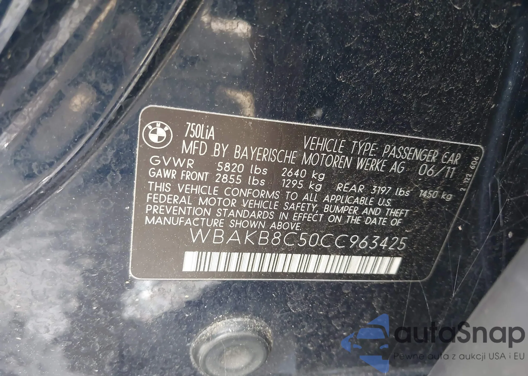 LOT: 42543576 VIN: WBAKB8C50CC963425