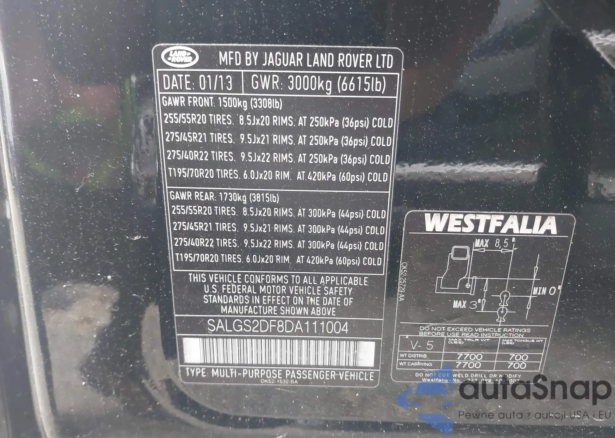 • VIN SALGS2DF8DA111004
