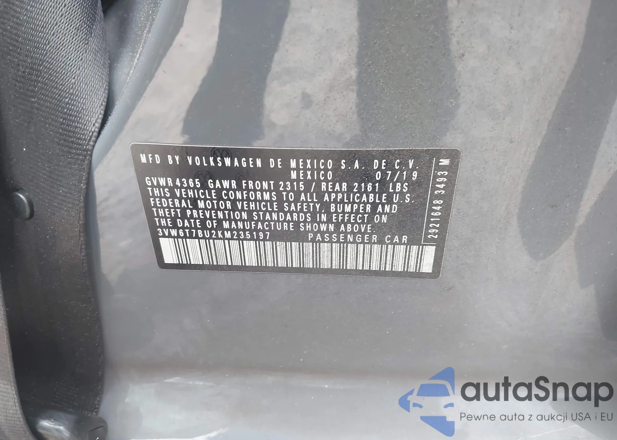 • VIN 3VW6T7BU2KM235197
