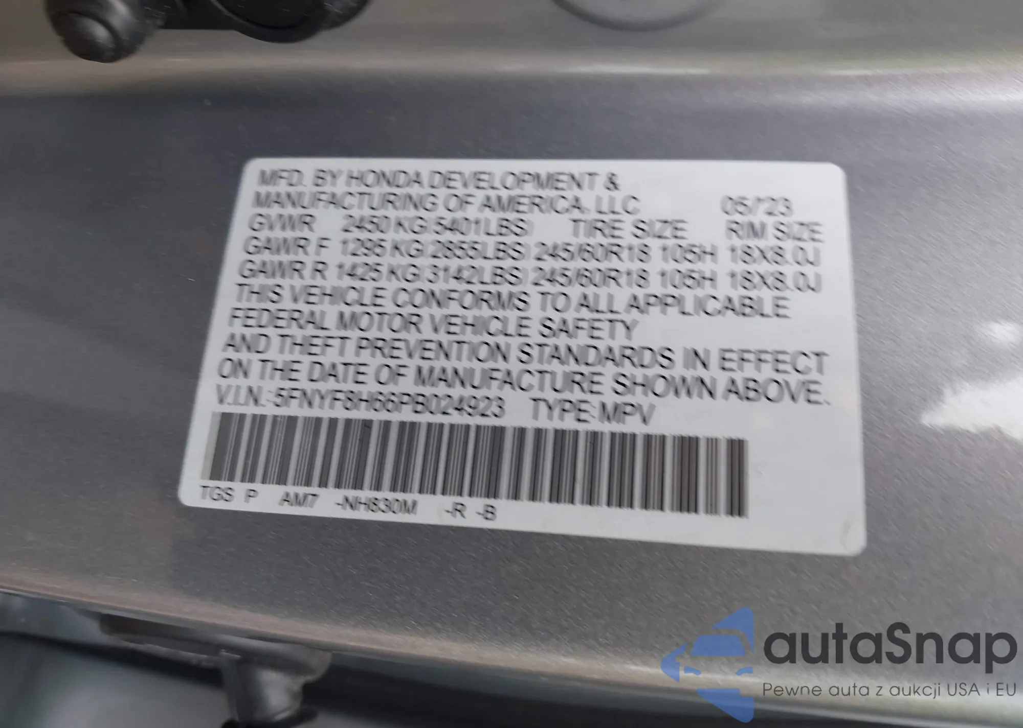 • VIN 2HGFC2F87MH521102