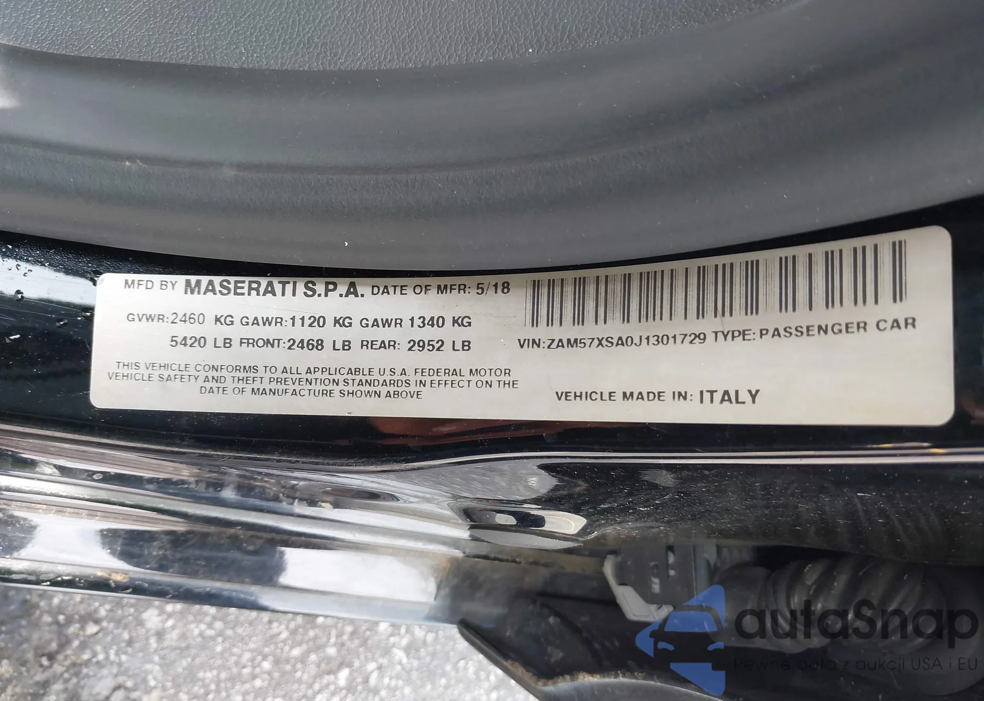 LOT: 42371157 VIN: ZAM57XSA0J1301729