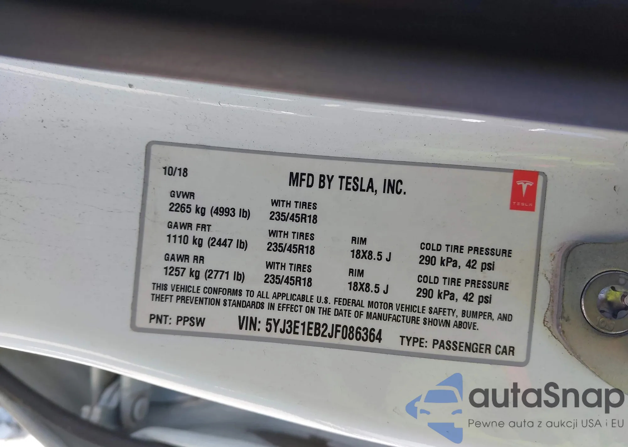• VIN 5YJ3E1EB2JF086364