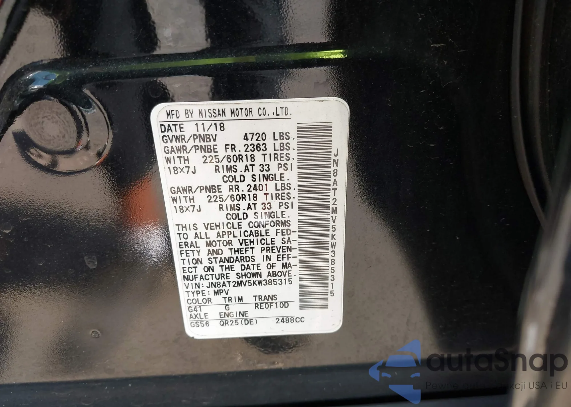 LOT: 42738949 VIN: JN8AT2MV5KW385315