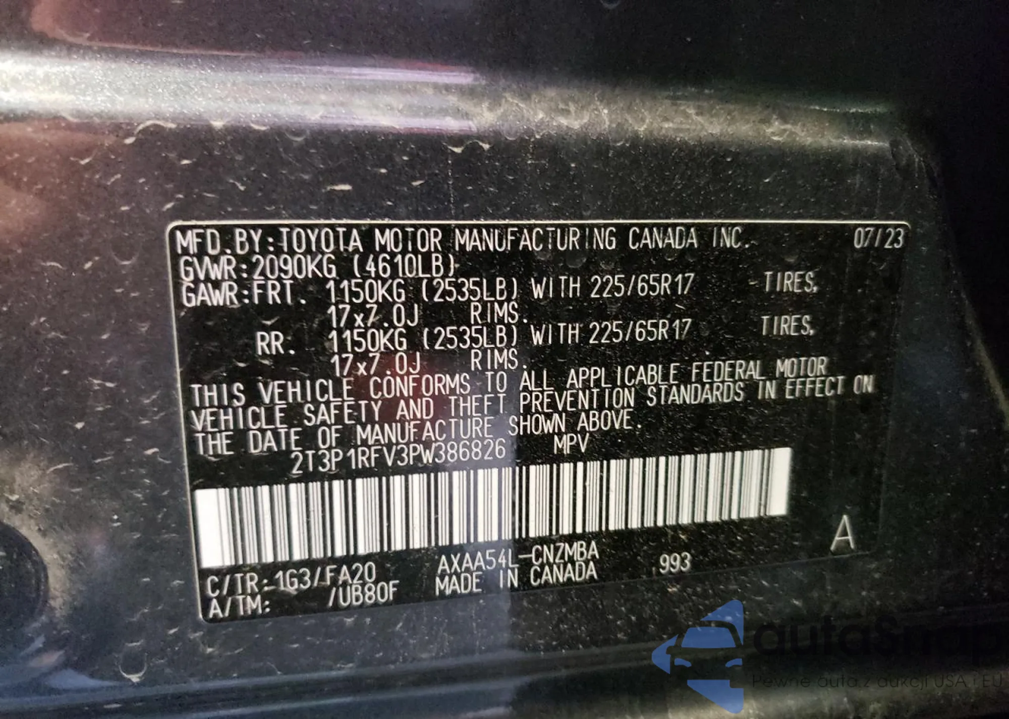 LOT: 56325305 VIN: 2T3P1RFV3PW386826