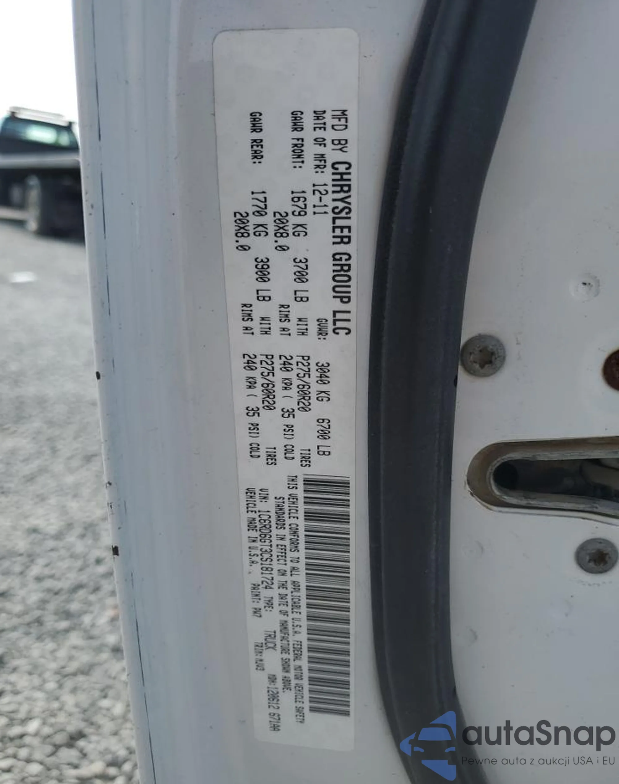 • VIN 1C6RD6GT3CS181724