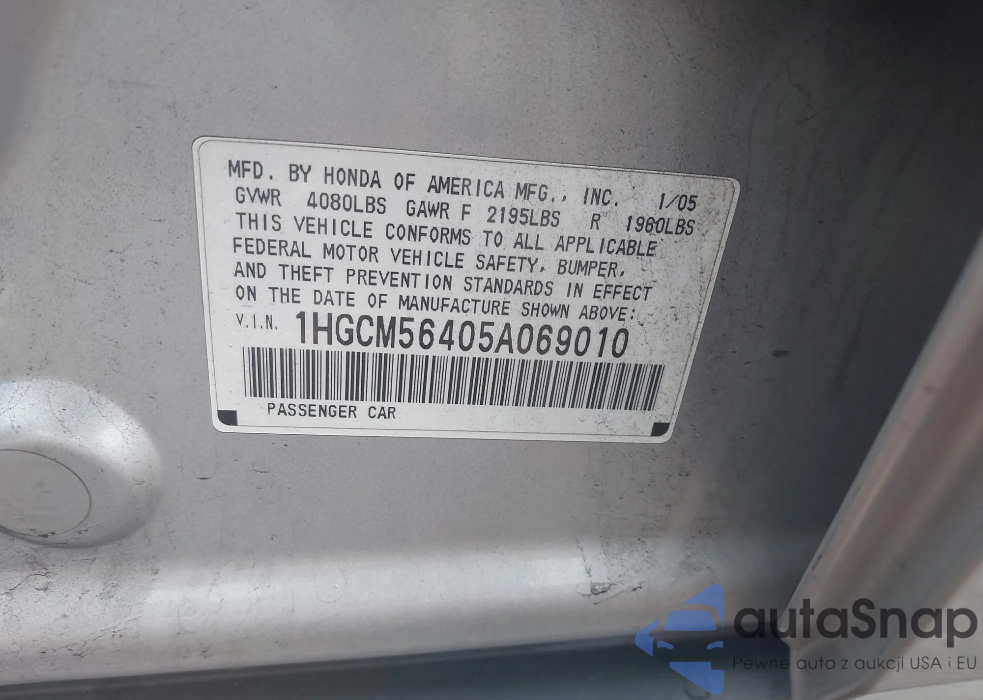 LOT: 42718414 VIN: 1HGCM56405A069010