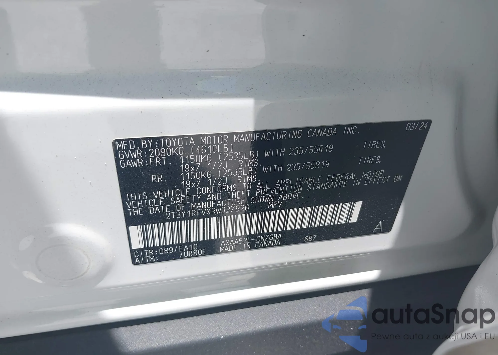 • VIN 2T3Y1RFVXRW327926