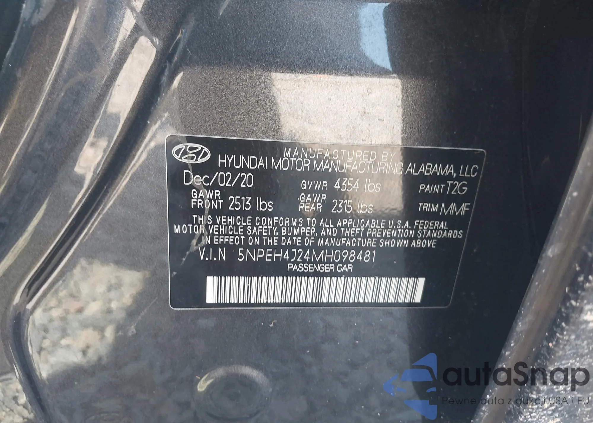 LOT: 42698328 VIN: 5NPEH4J24MH098481