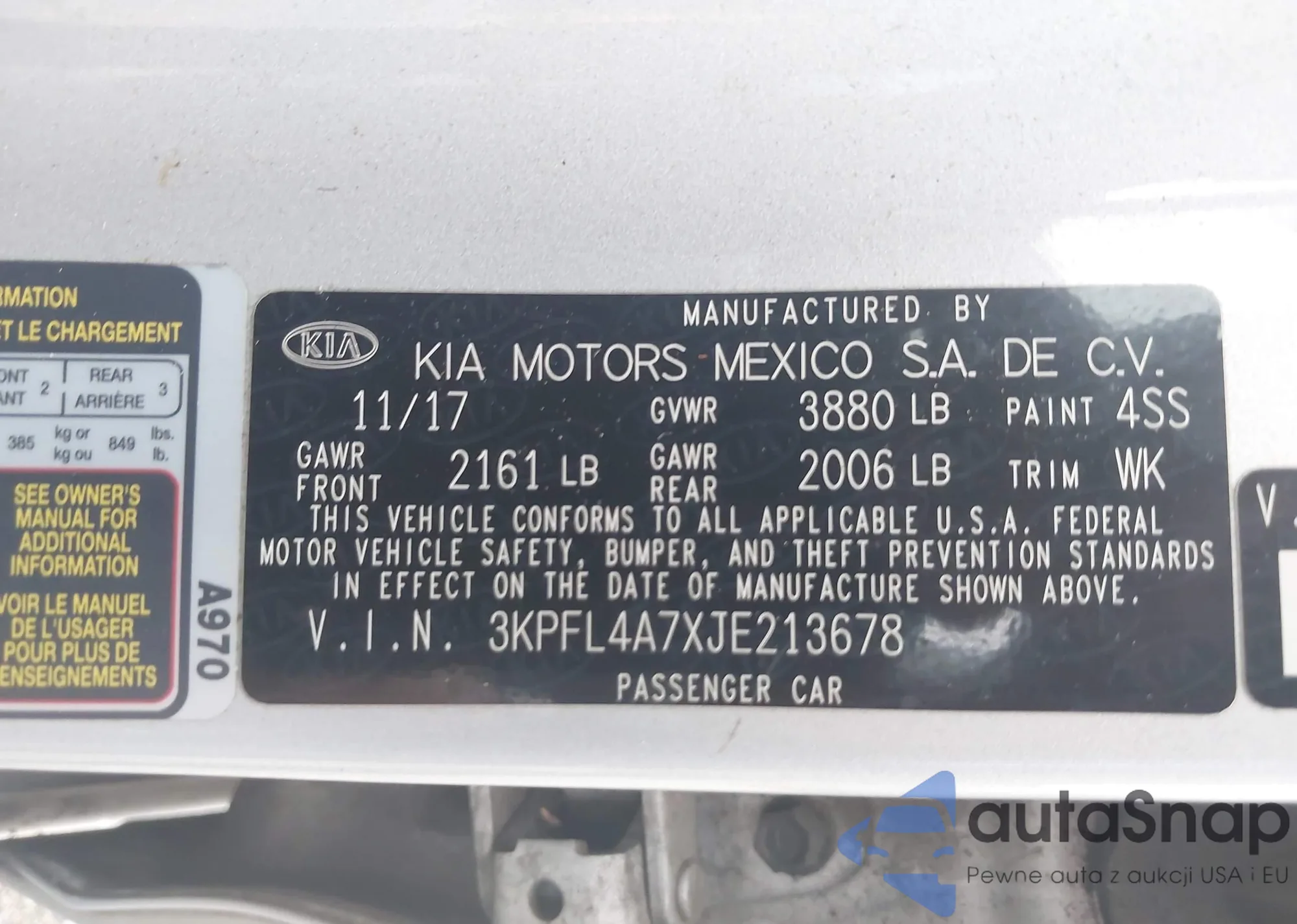 • VIN 3KPFL4A7XJE213678