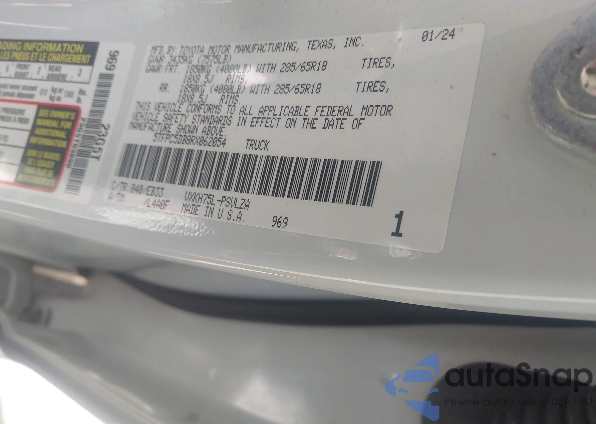 • VIN 5TFPC5DB8RX062054