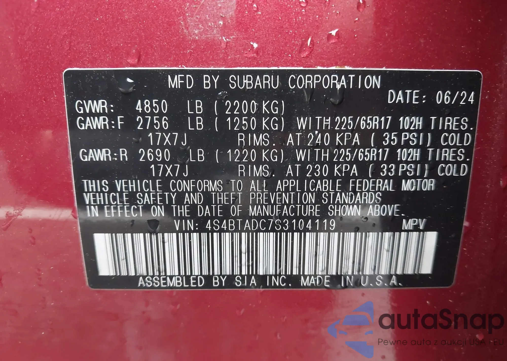 • VIN 4S4BTADC7S3104119
