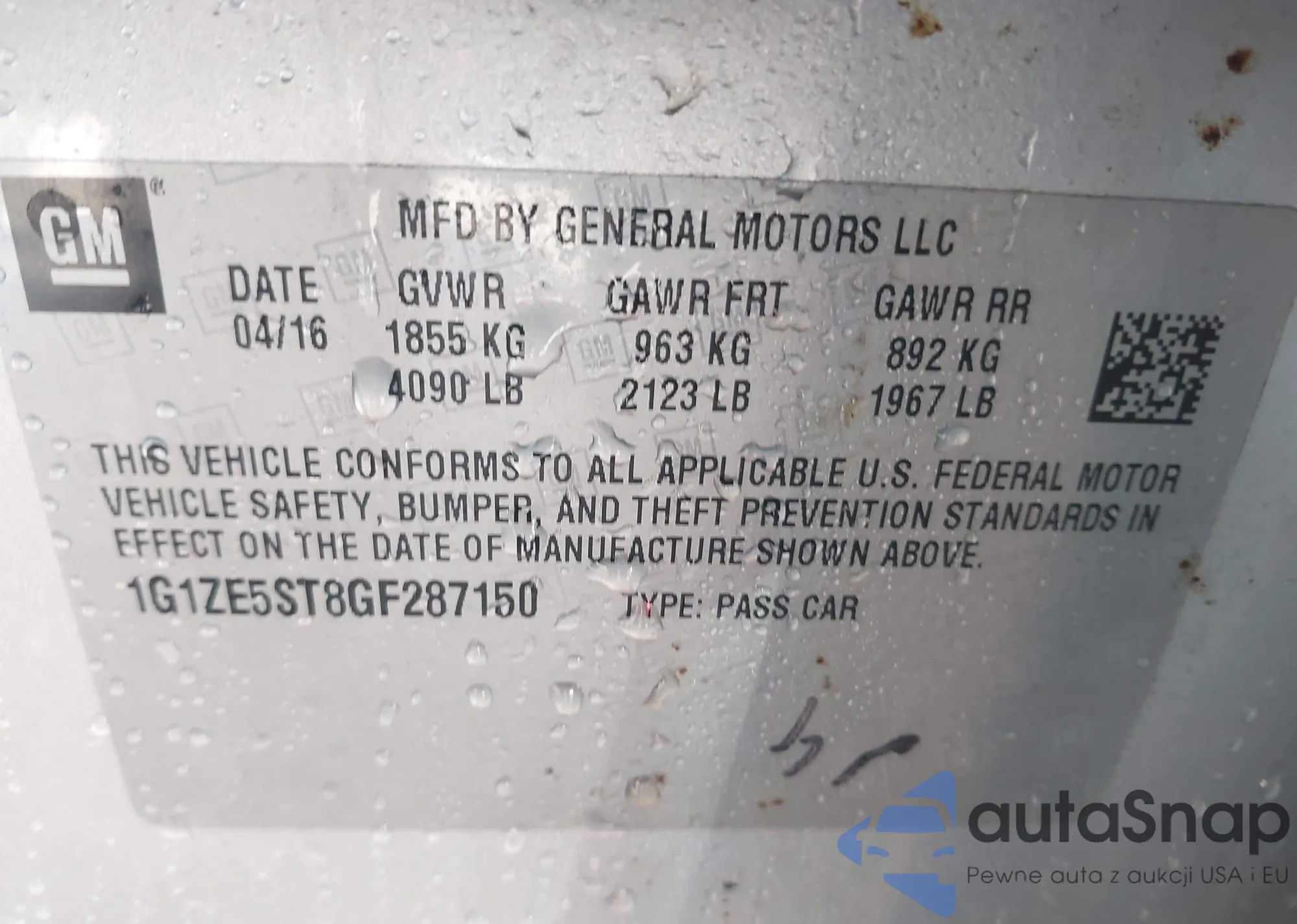 LOT: 42354404 VIN: 3G1BE6SM5JS640463