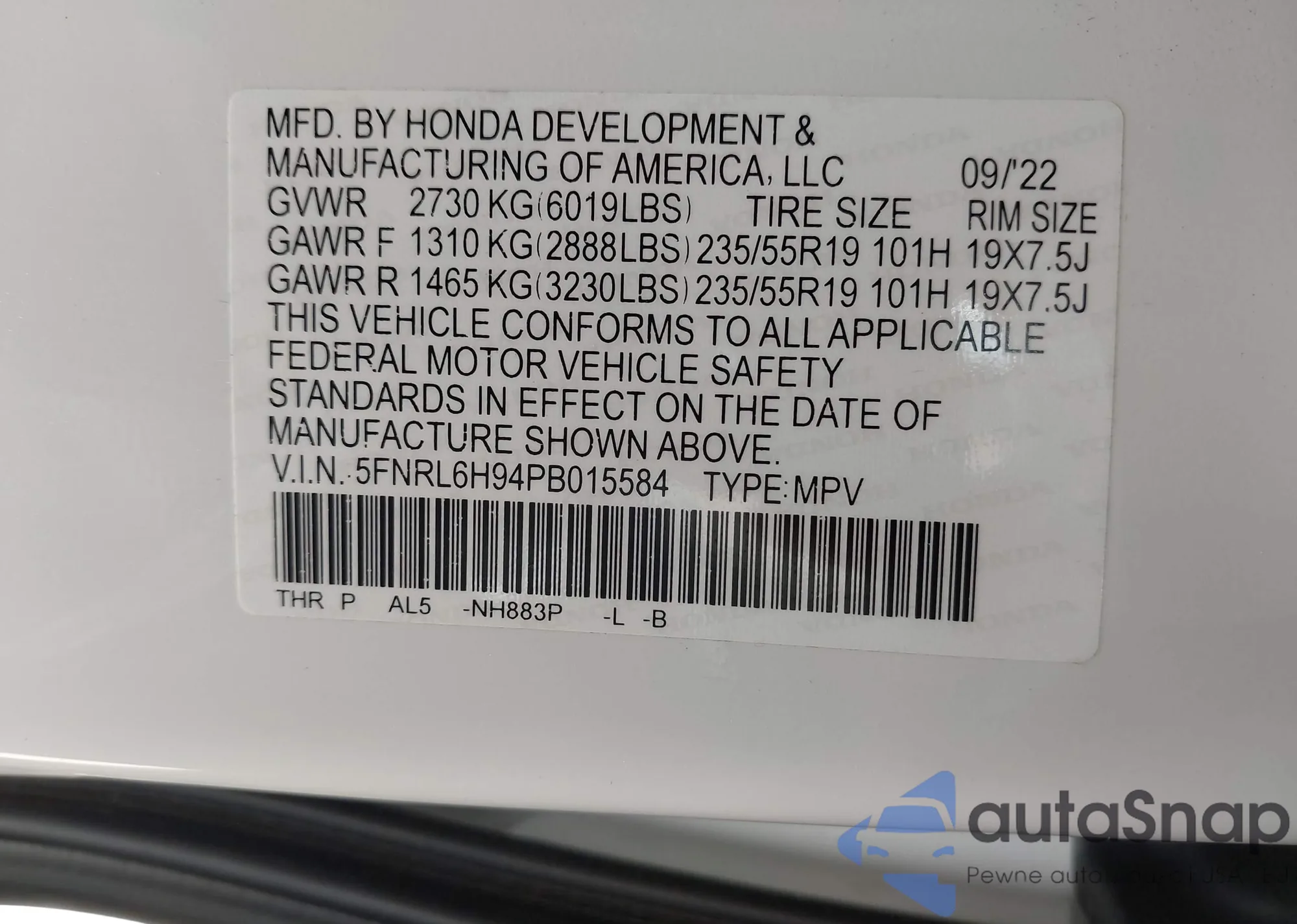 • VIN JA4T5UA96PZ027710