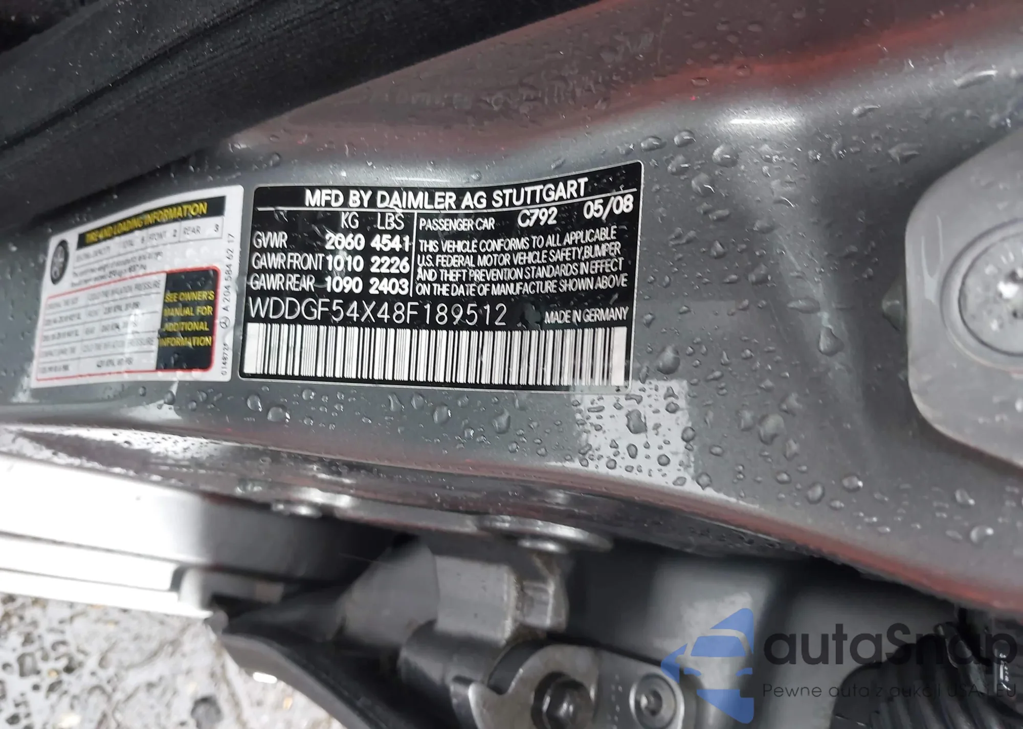 LOT: 42513590 VIN: WDDGF54X48F189512