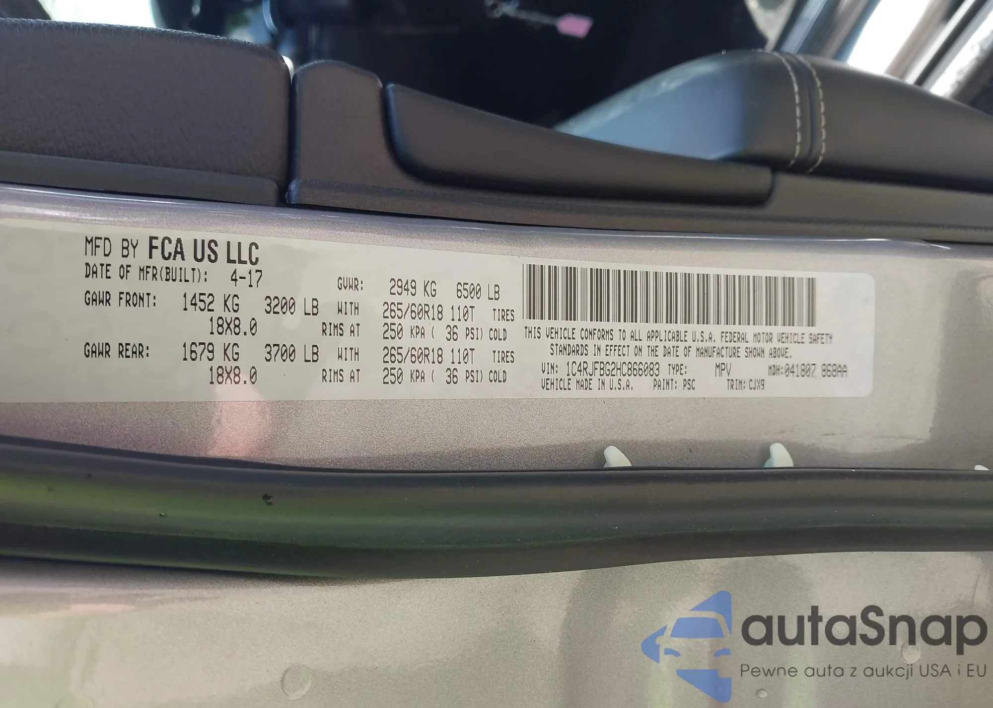 • VIN 1C4RJFBG2HC866083