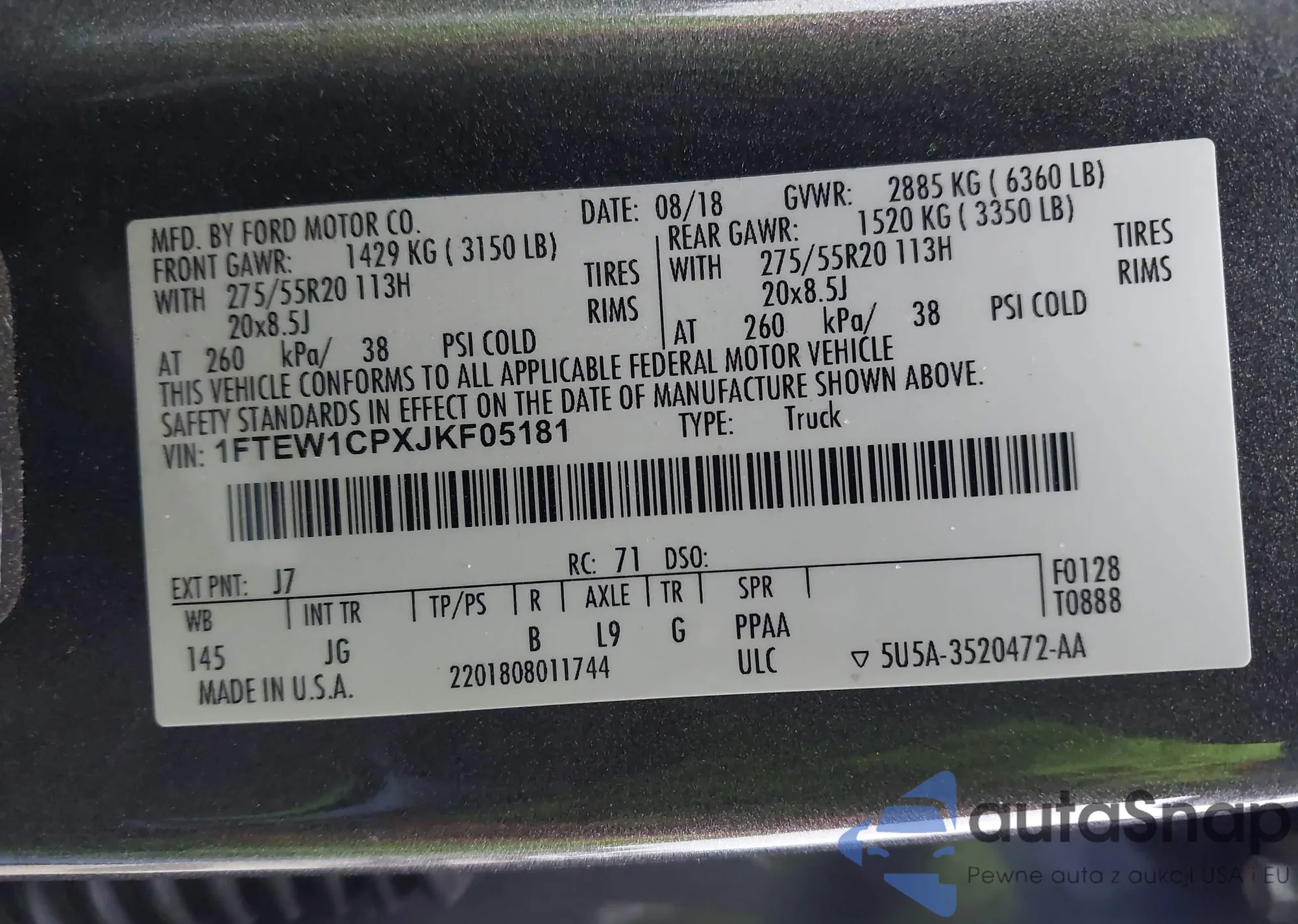 LOT: 42433178 VIN: 1FTEW1CPXJKF05181