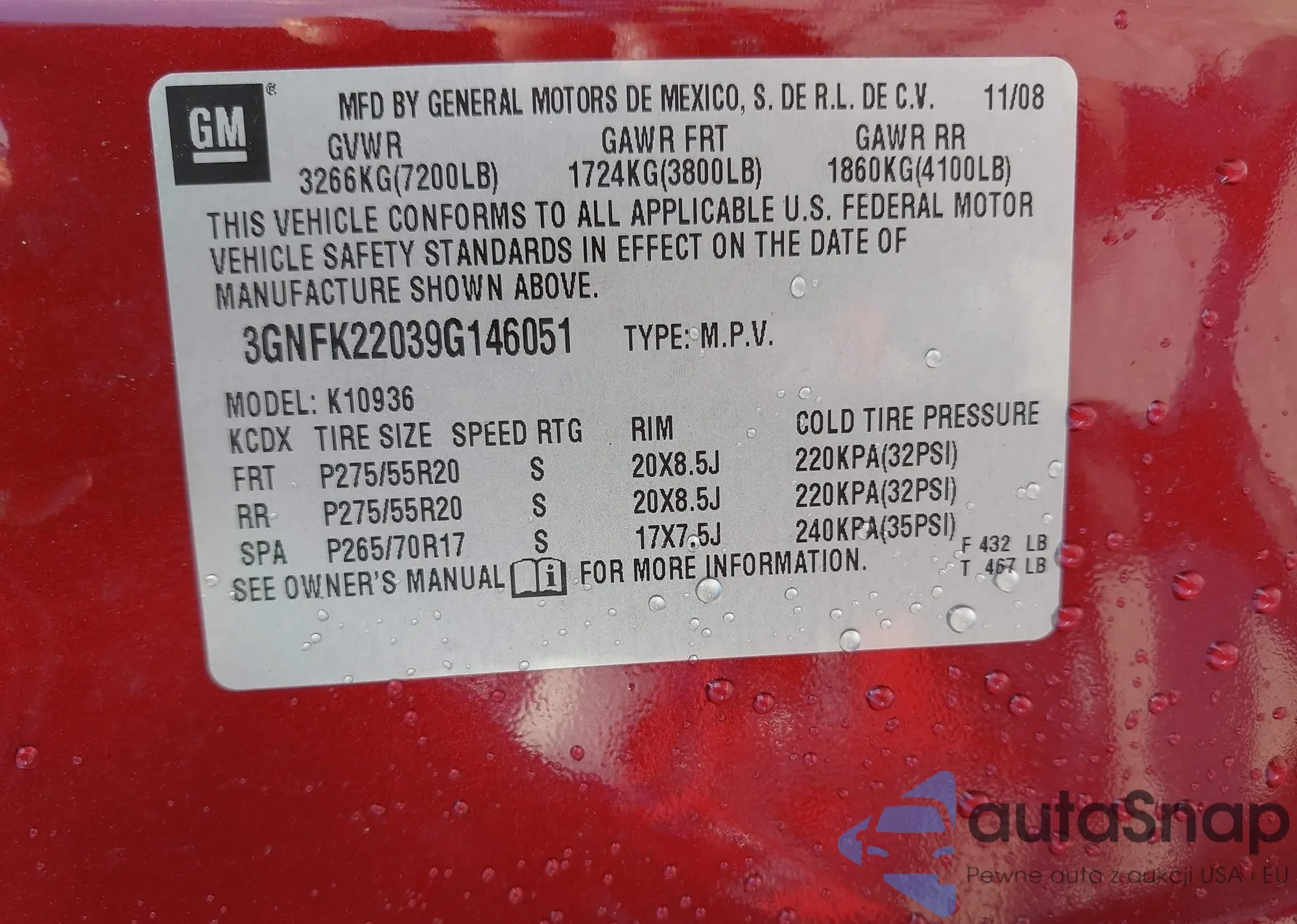 • VIN 3GNFK22039G146051