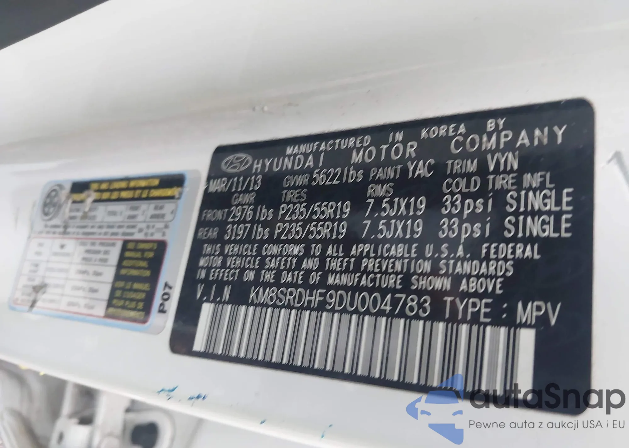 LOT: 42590538 VIN: KM8NU4CC6BU157885