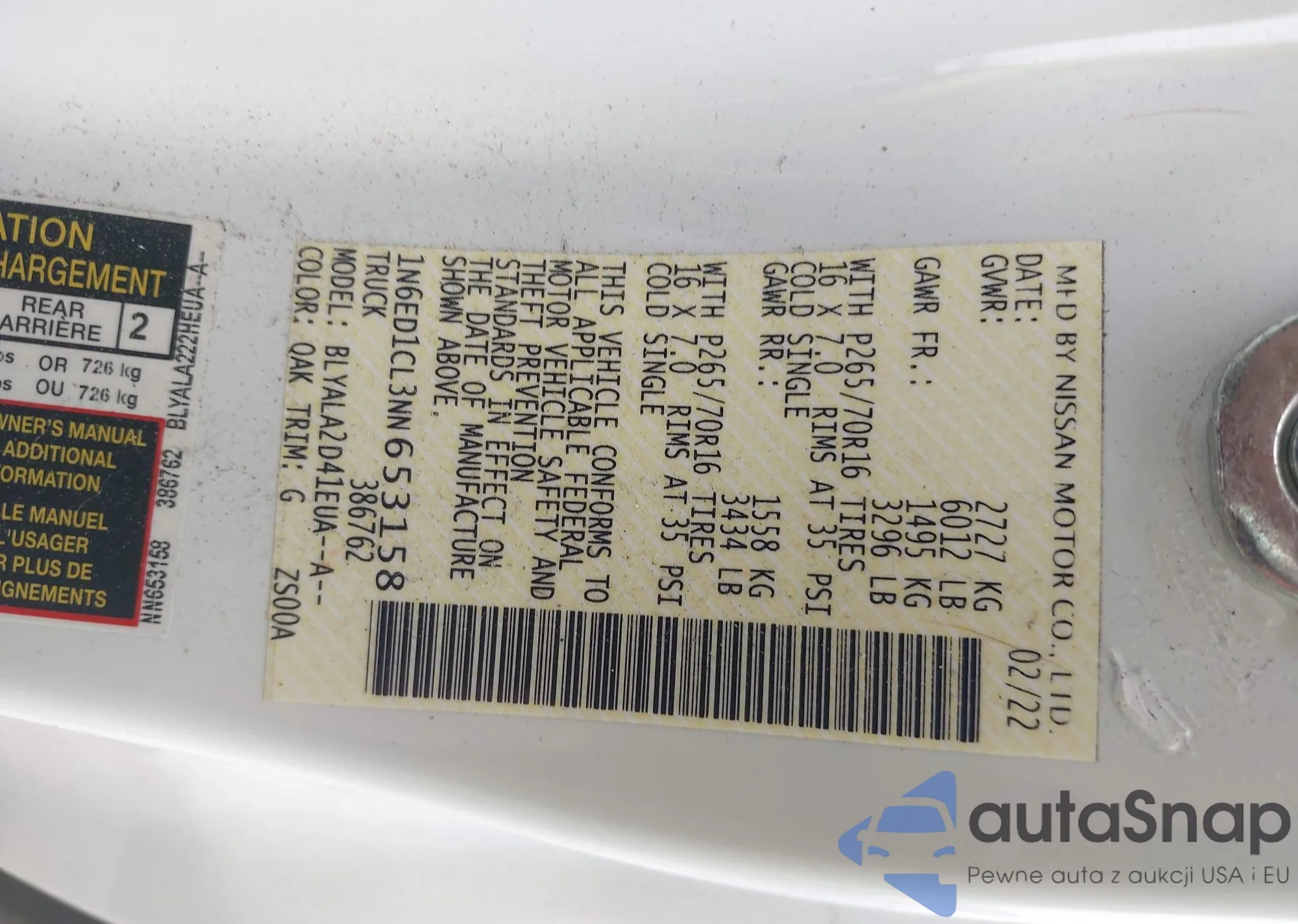 • VIN 1N6ED1CL3NN653158