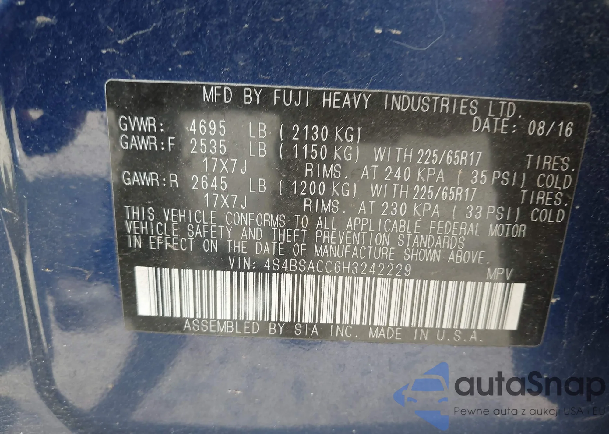 LOT: 42689055 VIN: 1HGCP2F88AA000102