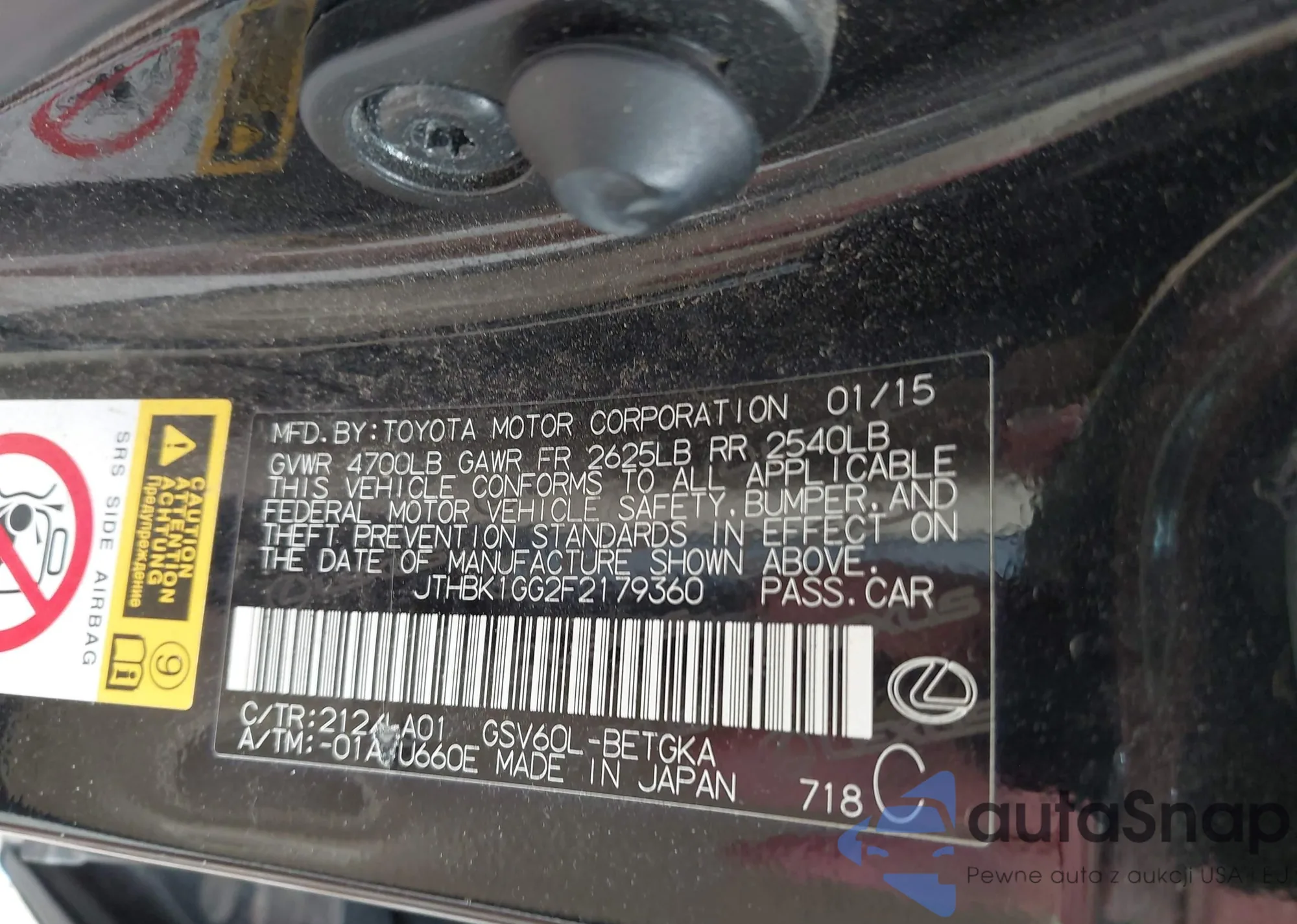 LOT: 42709836 VIN: JTHBK1GG2F2179360