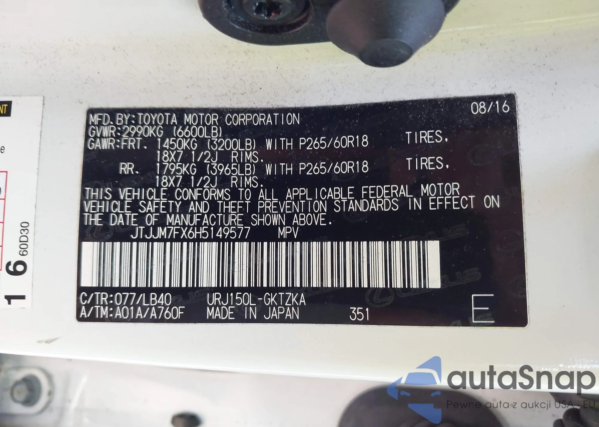 LOT: 42487403 VIN: JTJJM7FX6H5149577