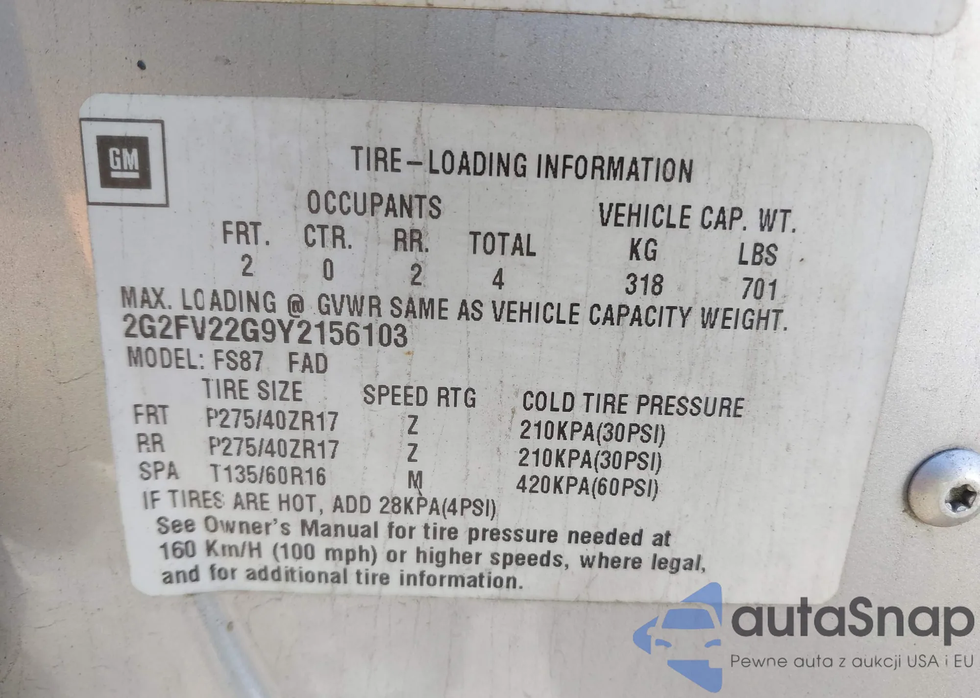 • VIN 2G2FV22G9Y2156103