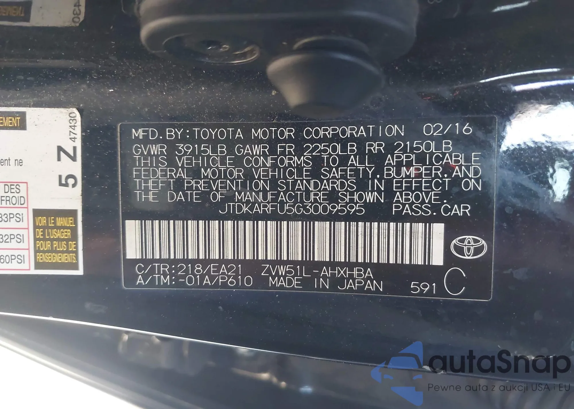 • VIN 4T1BD1FK5DU075508