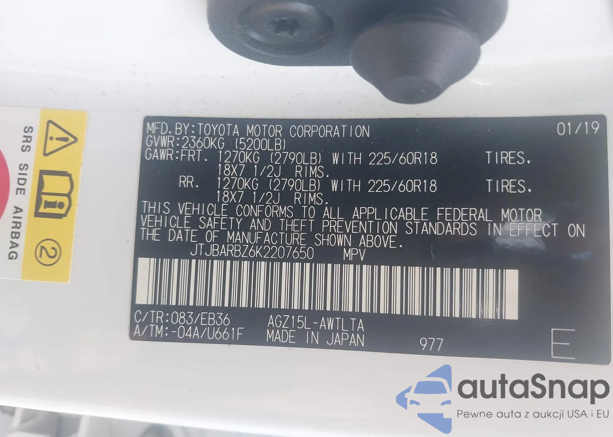LOT: 42712222 VIN: JTJBARBZ6K2207650