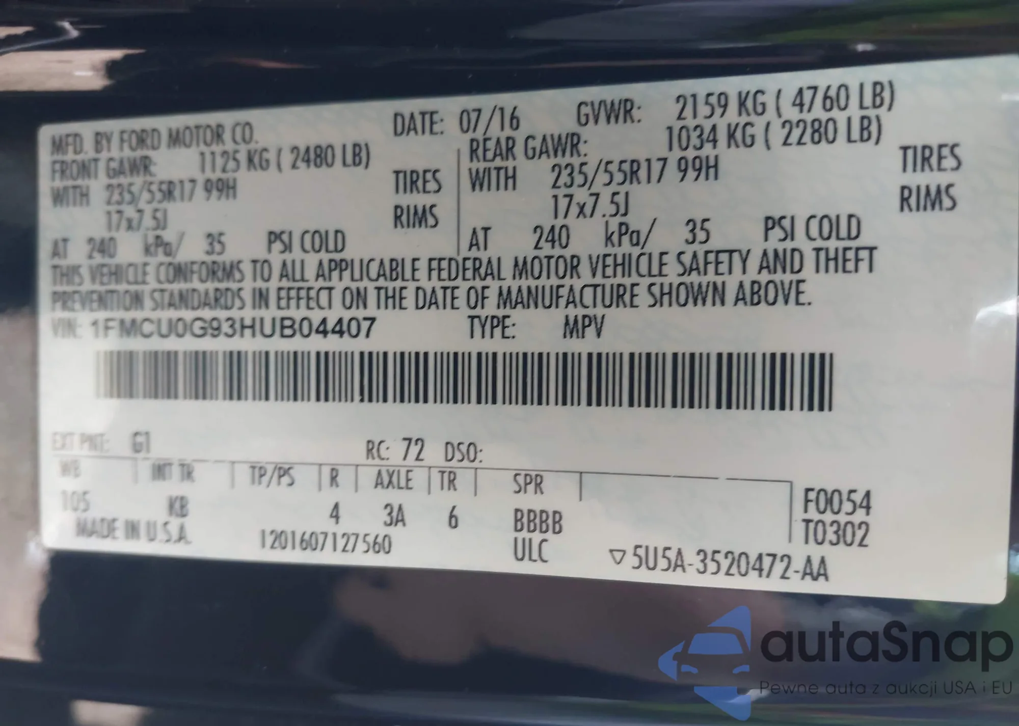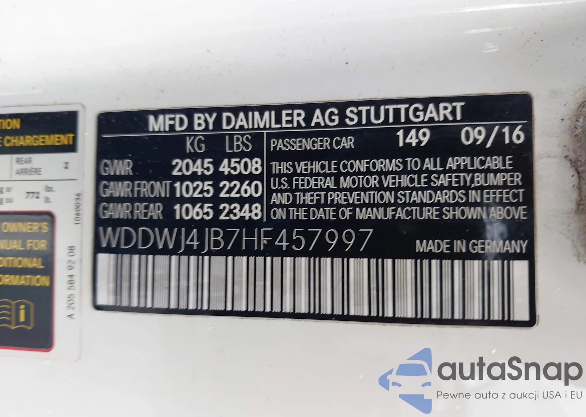 LOT: 42276157 VIN: WDDWJ4JB7HF457997
