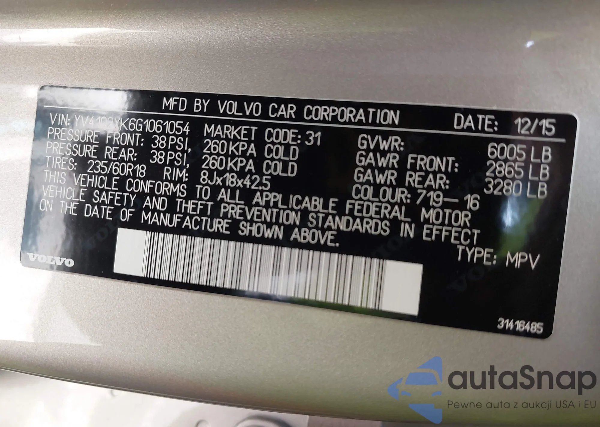 • VIN YV4102XK6G1061054