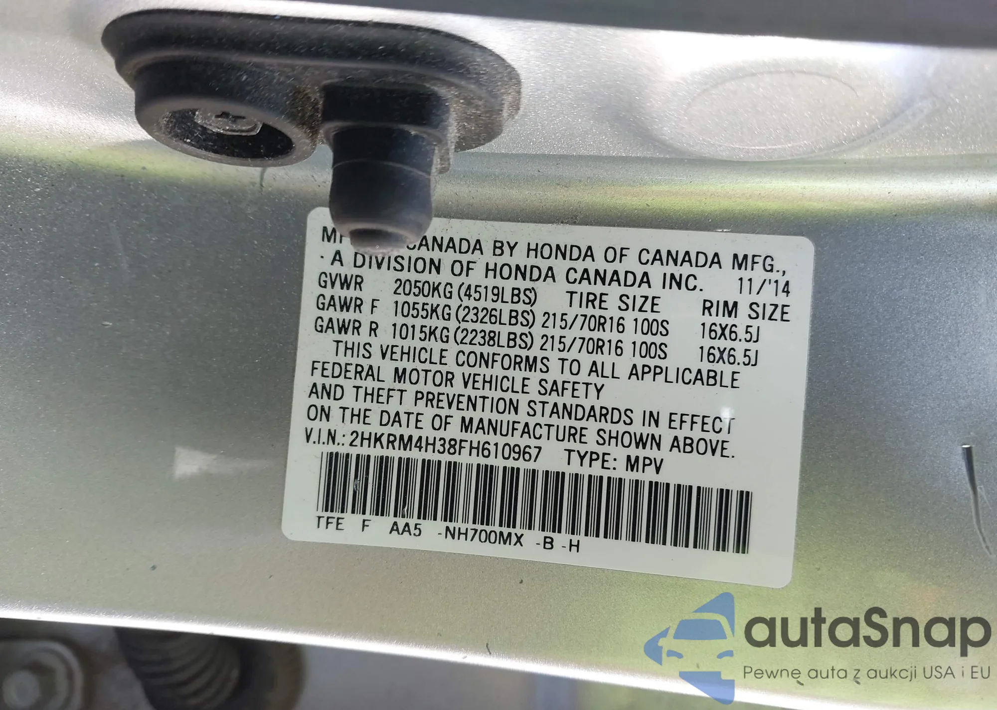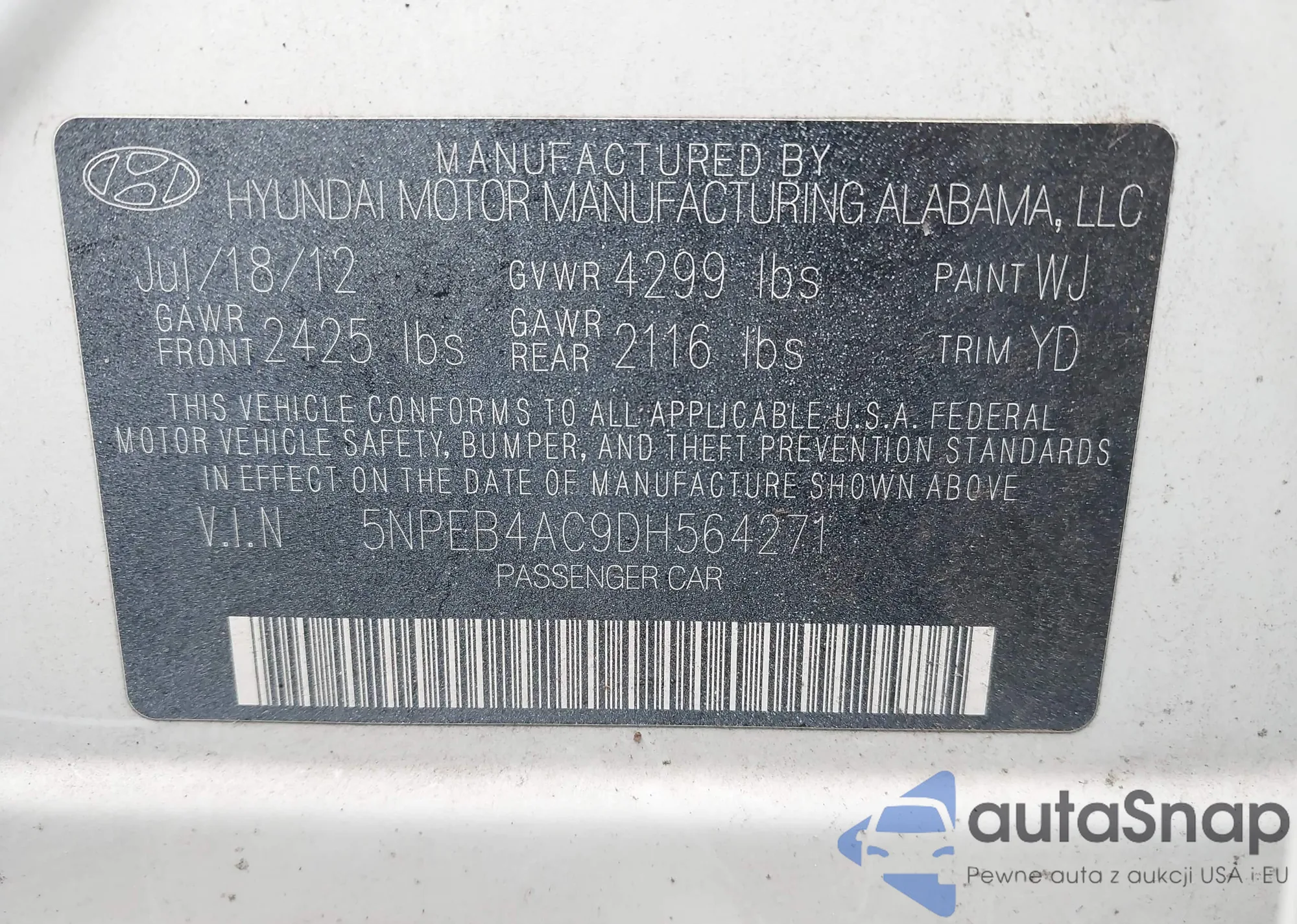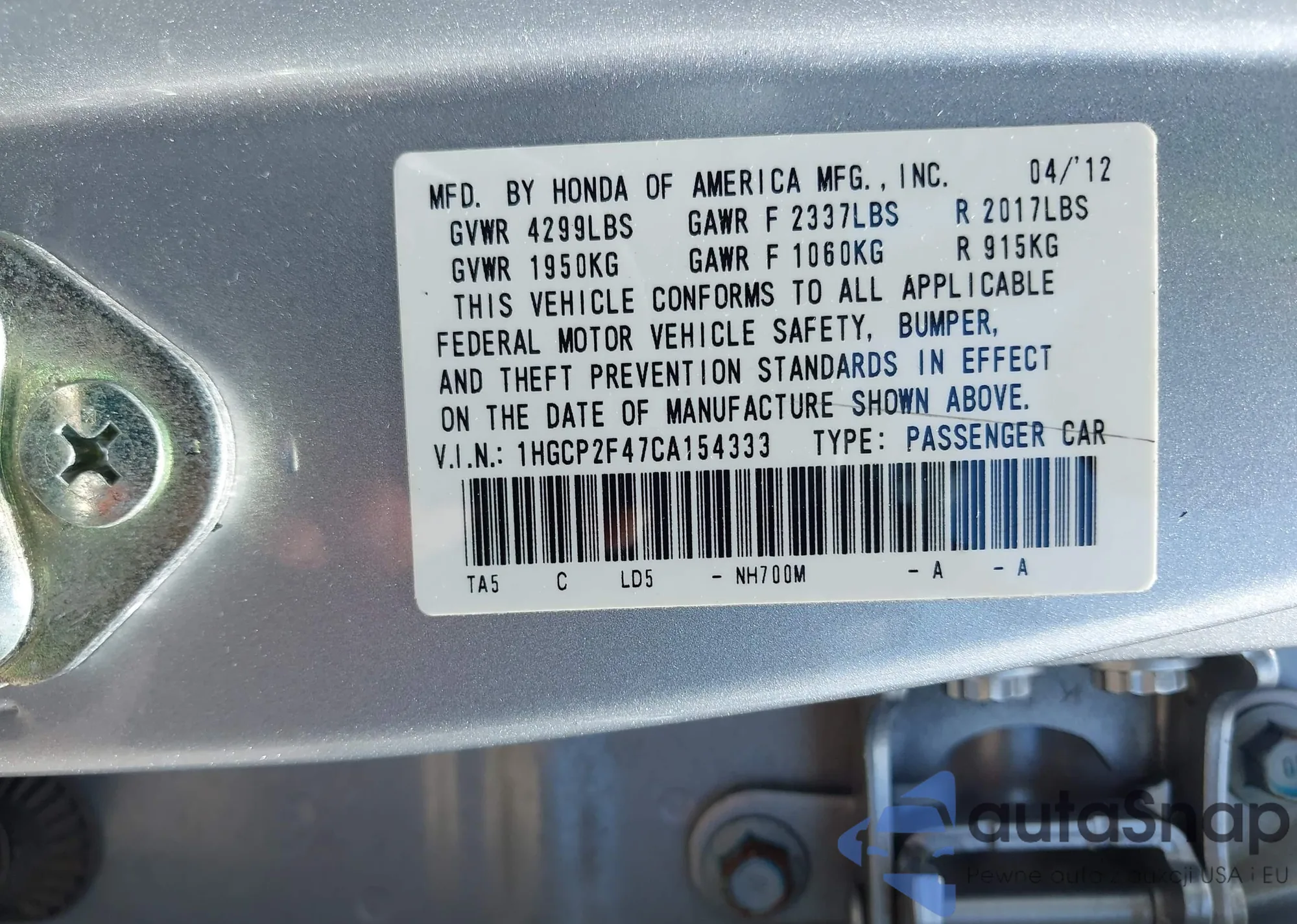 LOT: 42550438 VIN: 1HGCP2F47CA154333