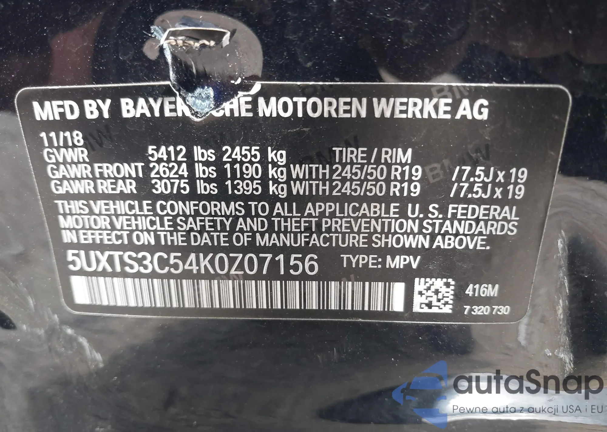 2019 BMW X3 M40I from USA, damaged, VIN 5UXTS3C54K0Z07156