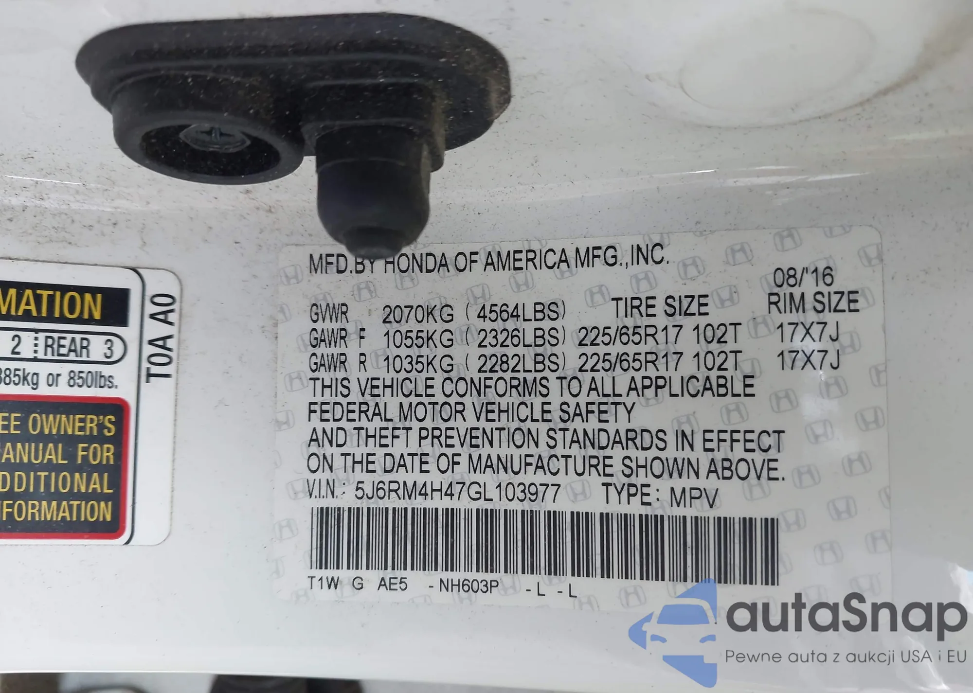 • VIN KNDPYDAH6P7087651