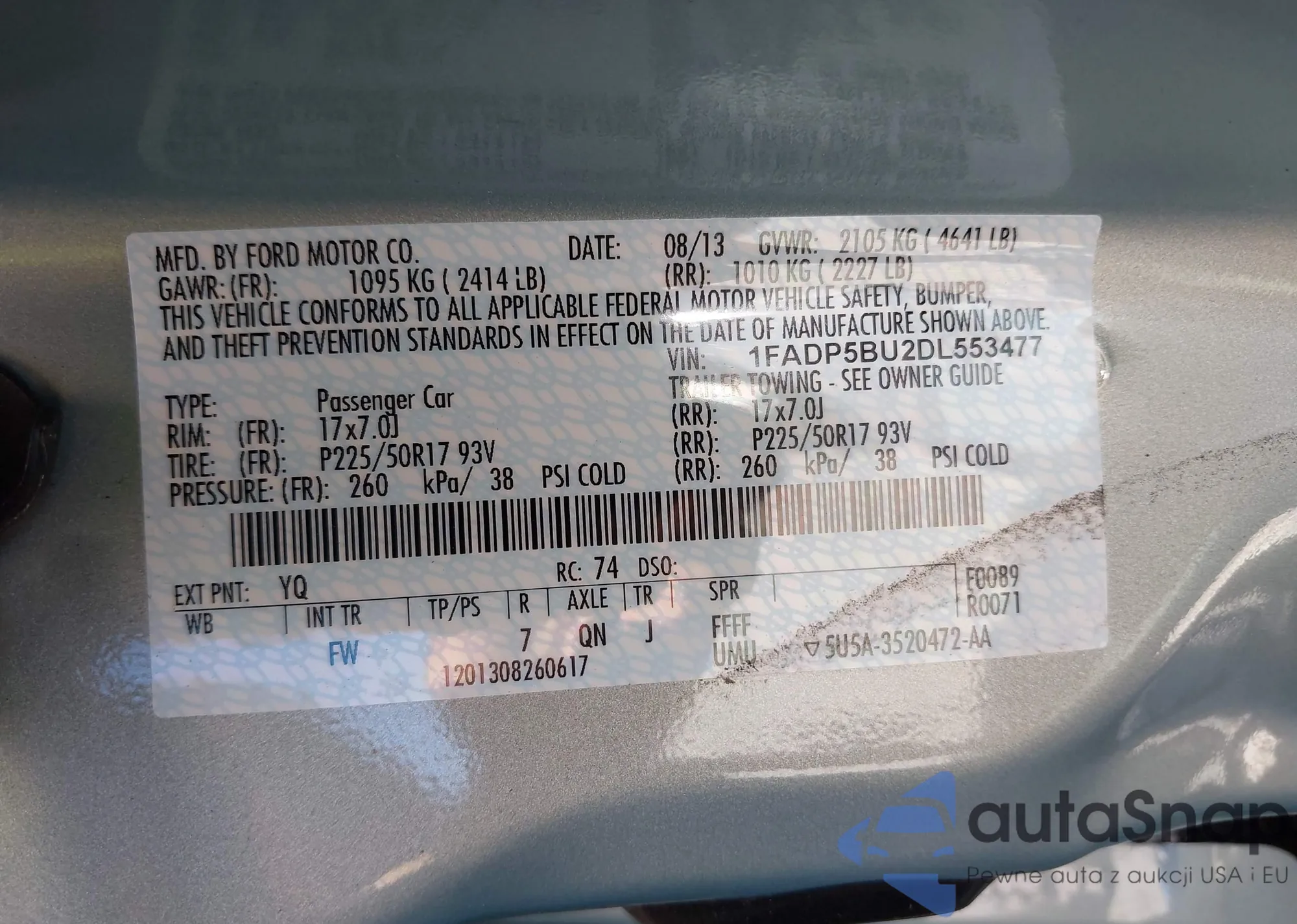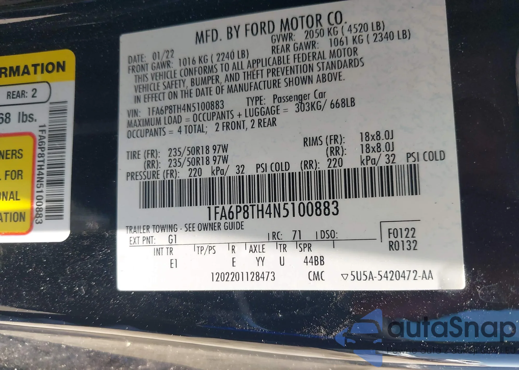 • VIN 1FA6P8TH4N5100883