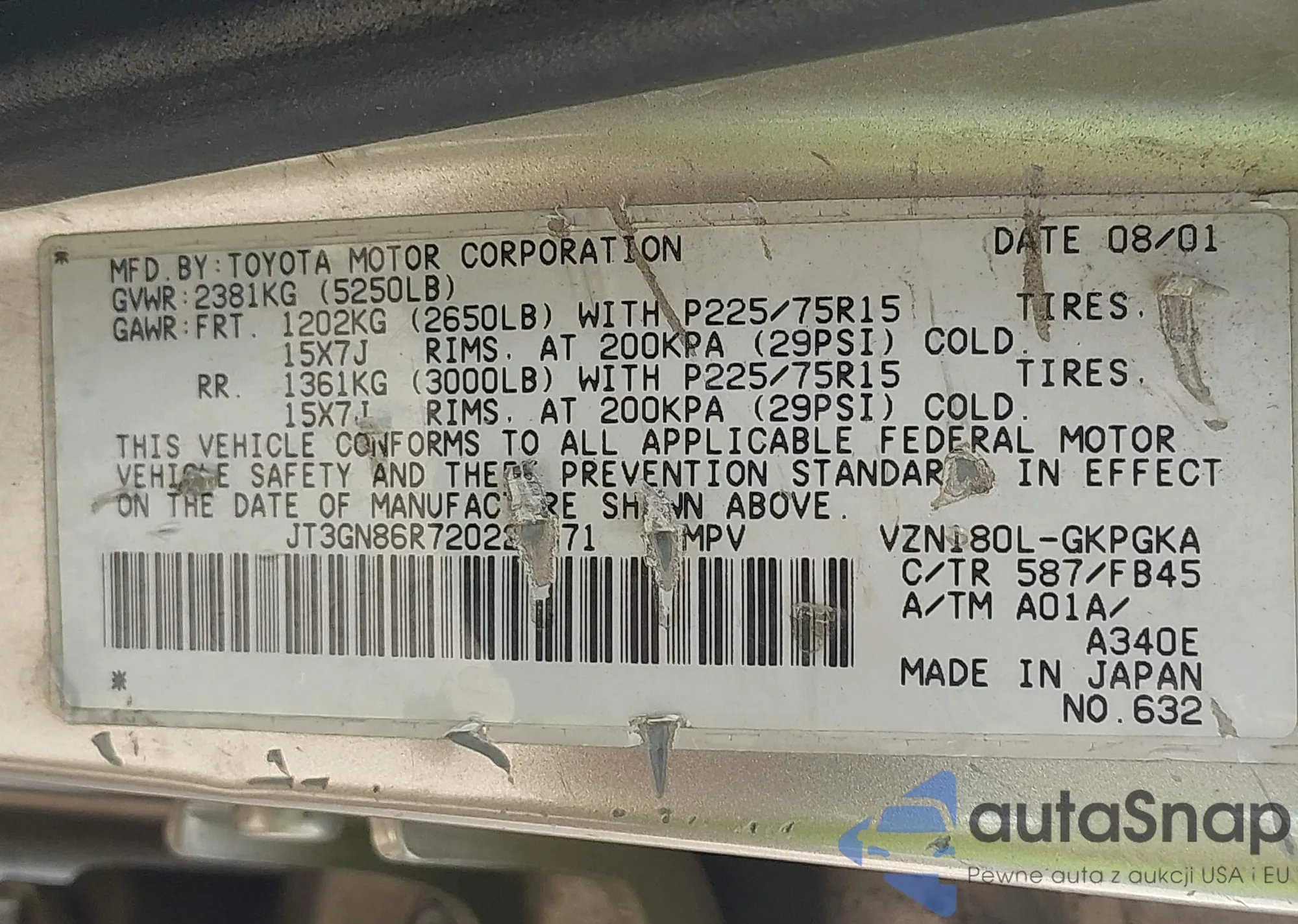 LOT: 42650097 VIN: JTJBZMCA4J2034746