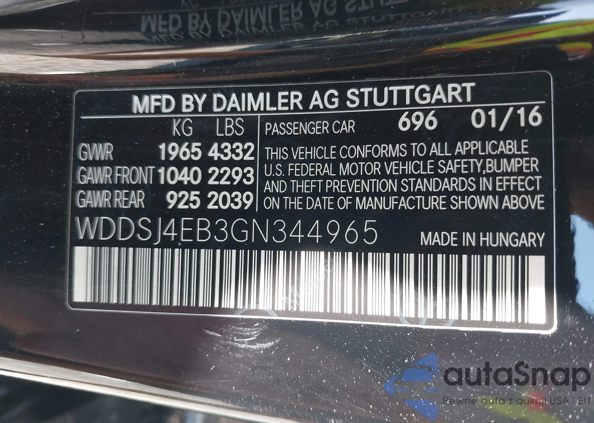 LOT: 42677616 VIN: WDDSJ4EB3GN344965