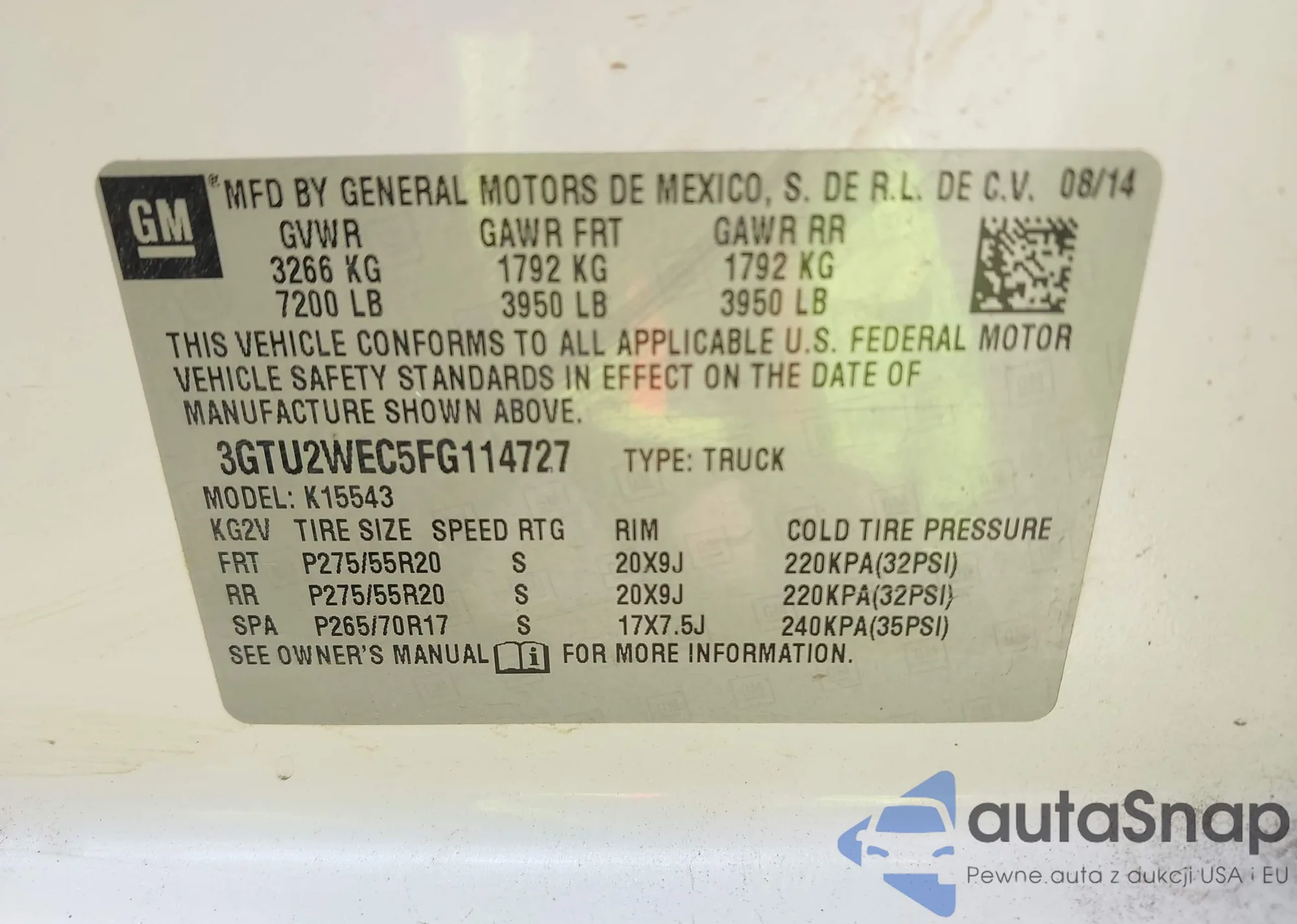 • VIN 5UXTS3C54K0Z07156