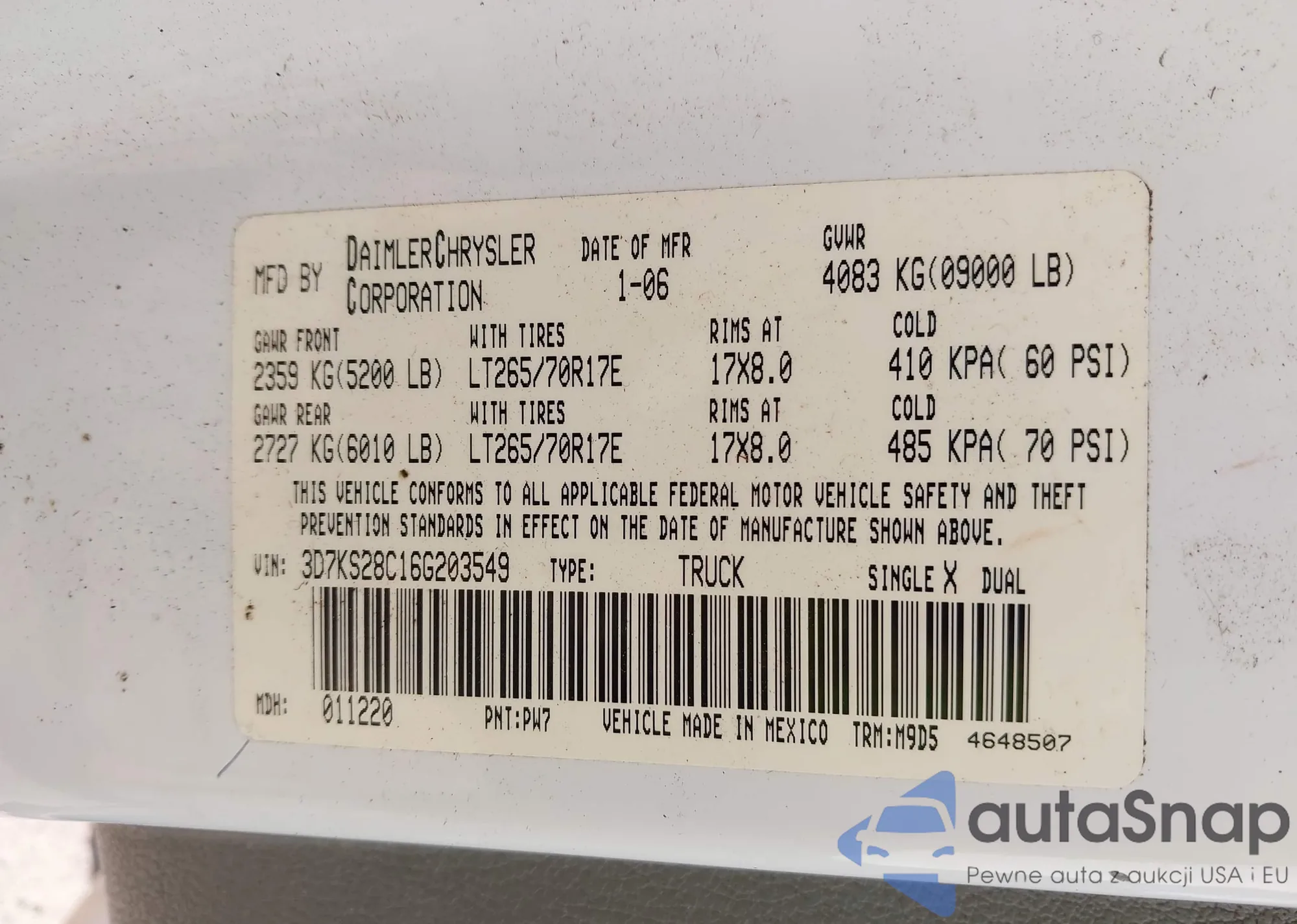 • VIN 3D7KS28C16G203549
