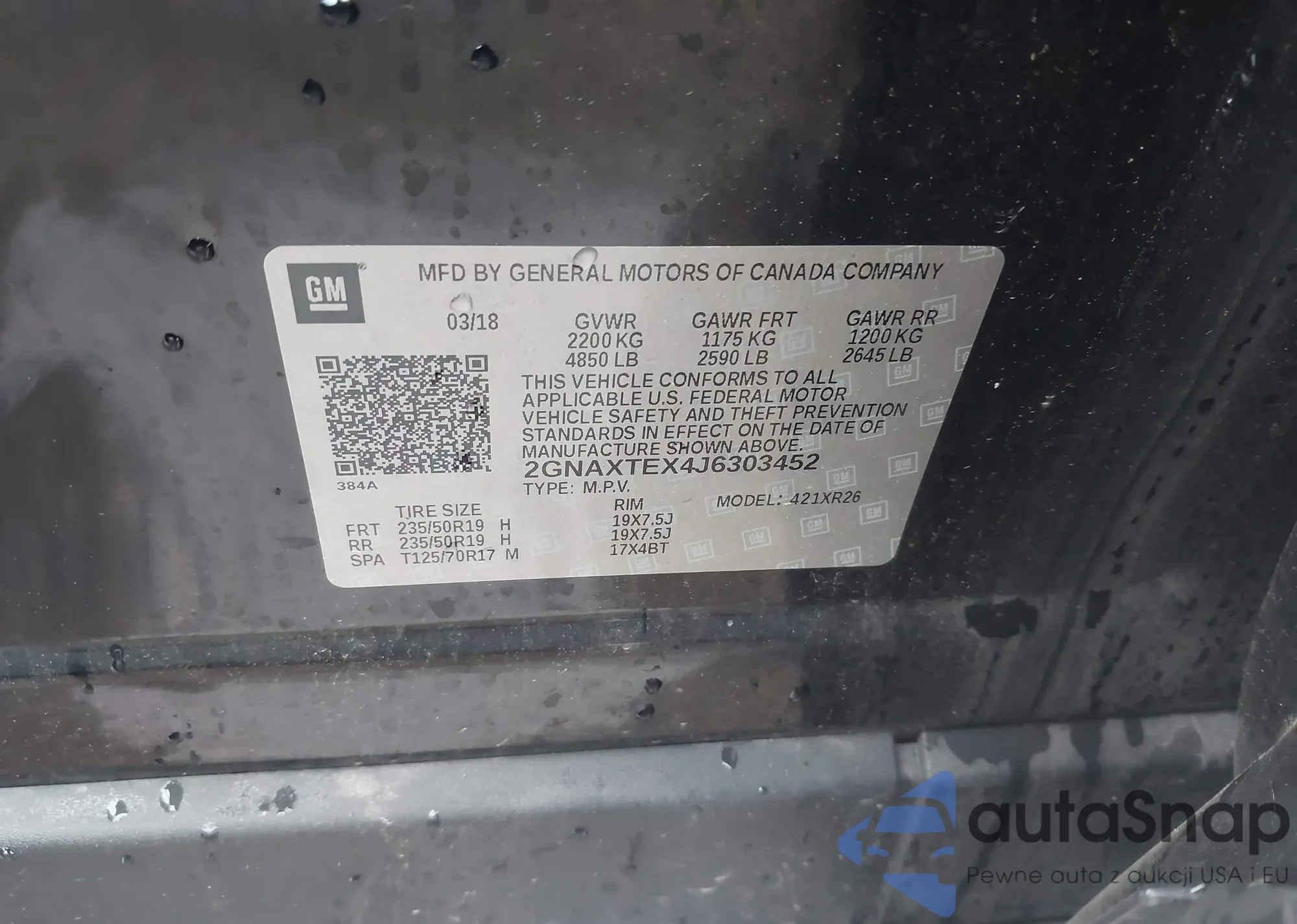 • VIN 2GNAXTEX4J6303452