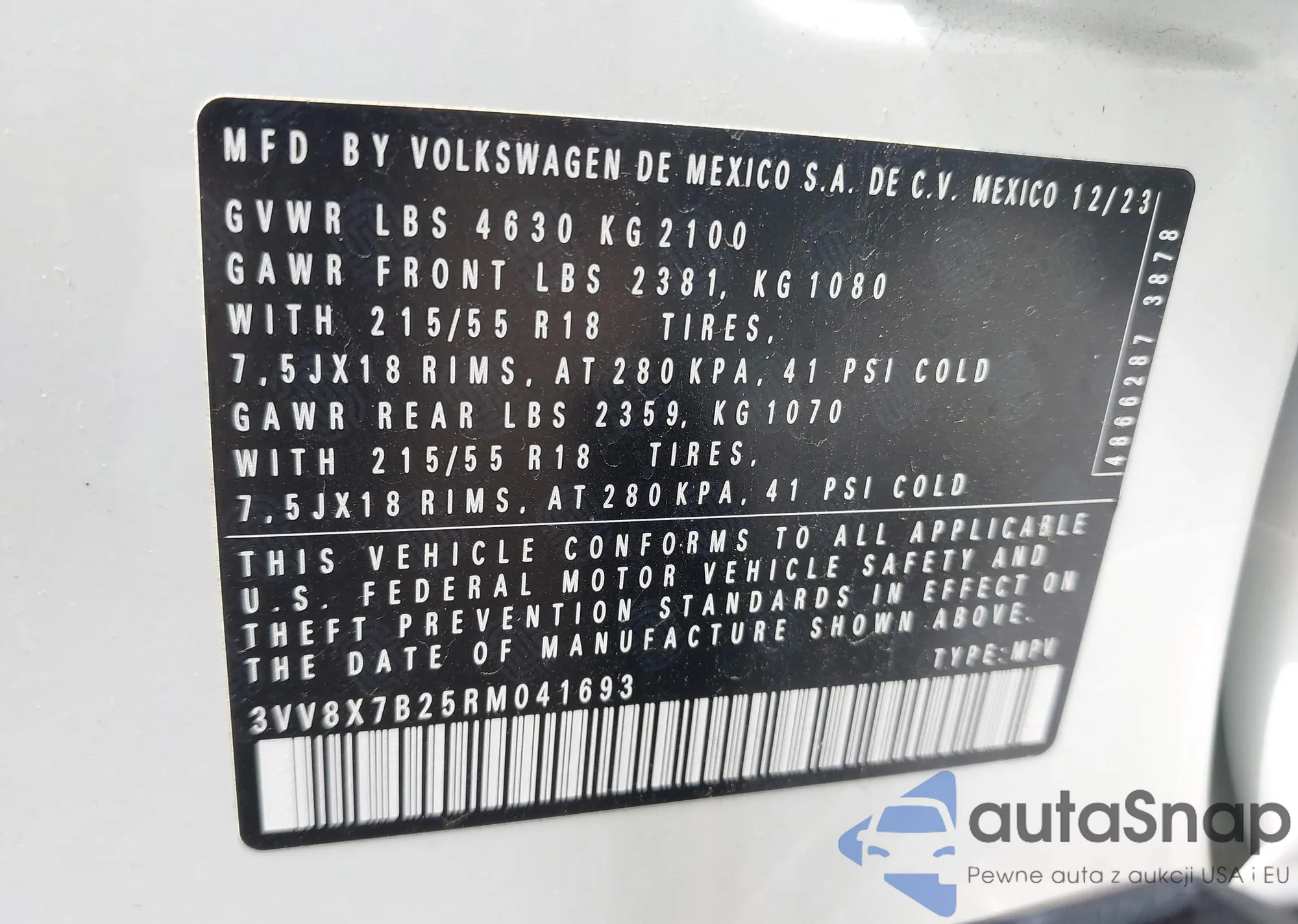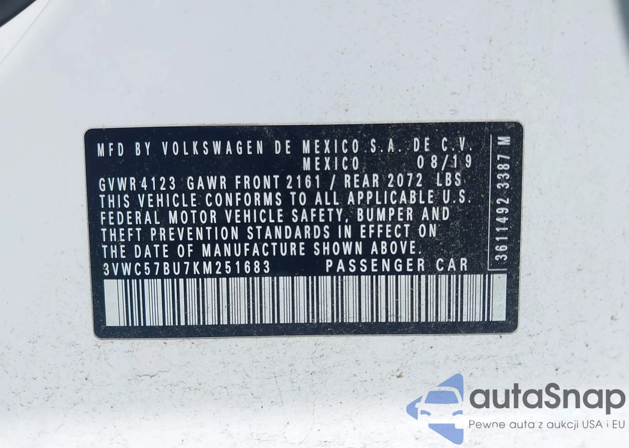 • VIN 3VWC57BU7KM251683