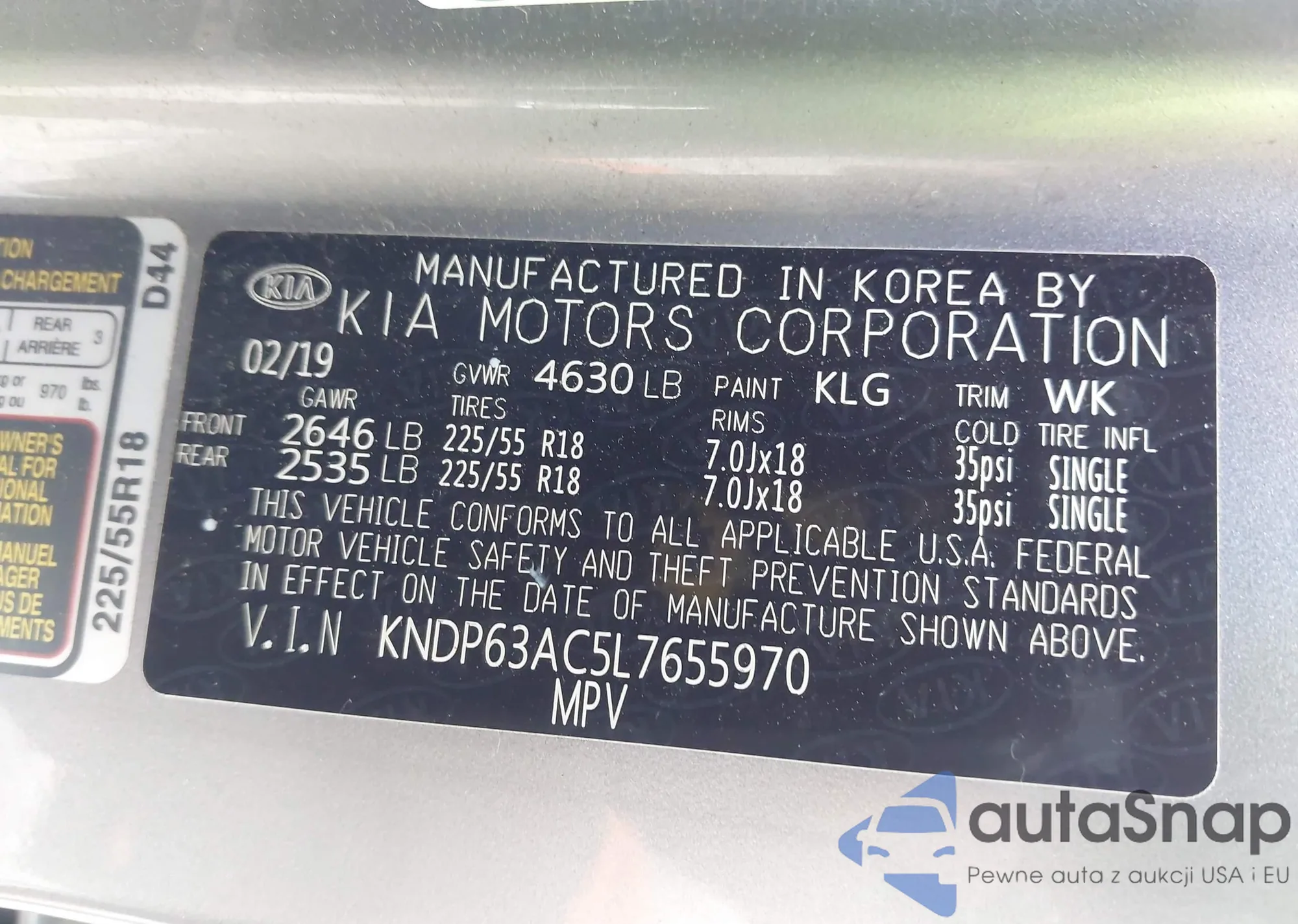 • VIN KNDP63AC5L7655970