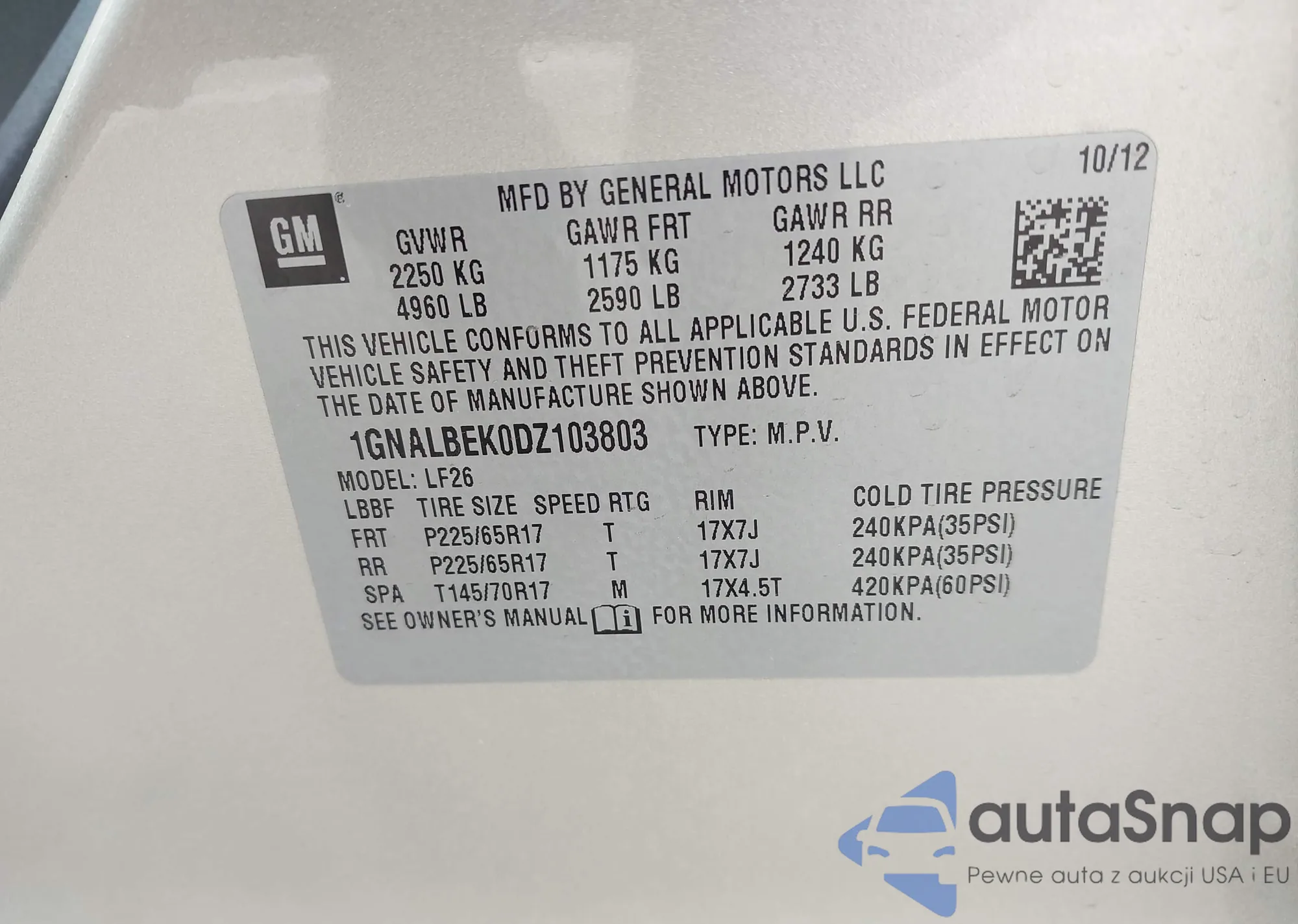 LOT: 42538569 VIN: KL79MSSL1SB010703