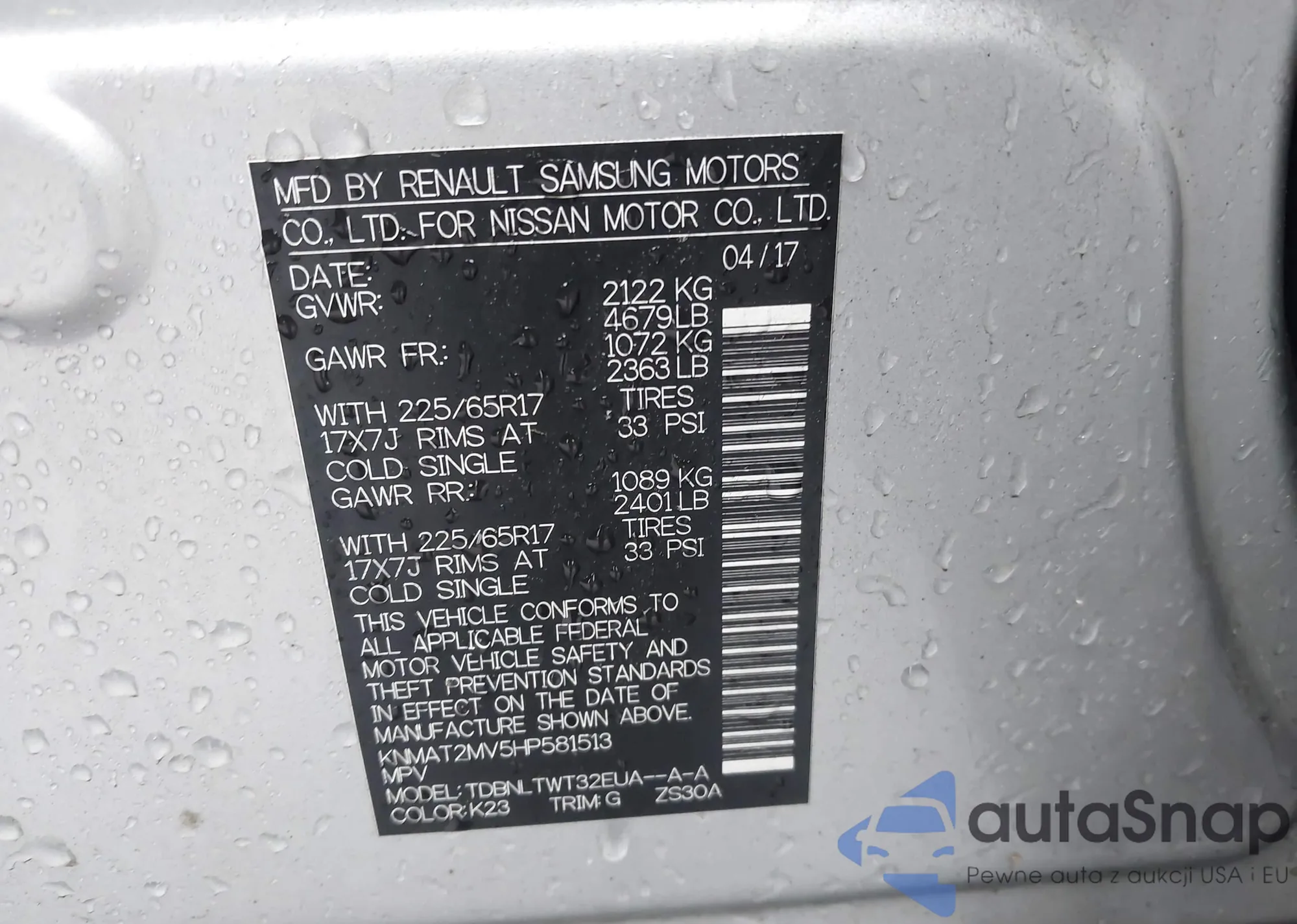 • VIN KNMAT2MV5HP581513