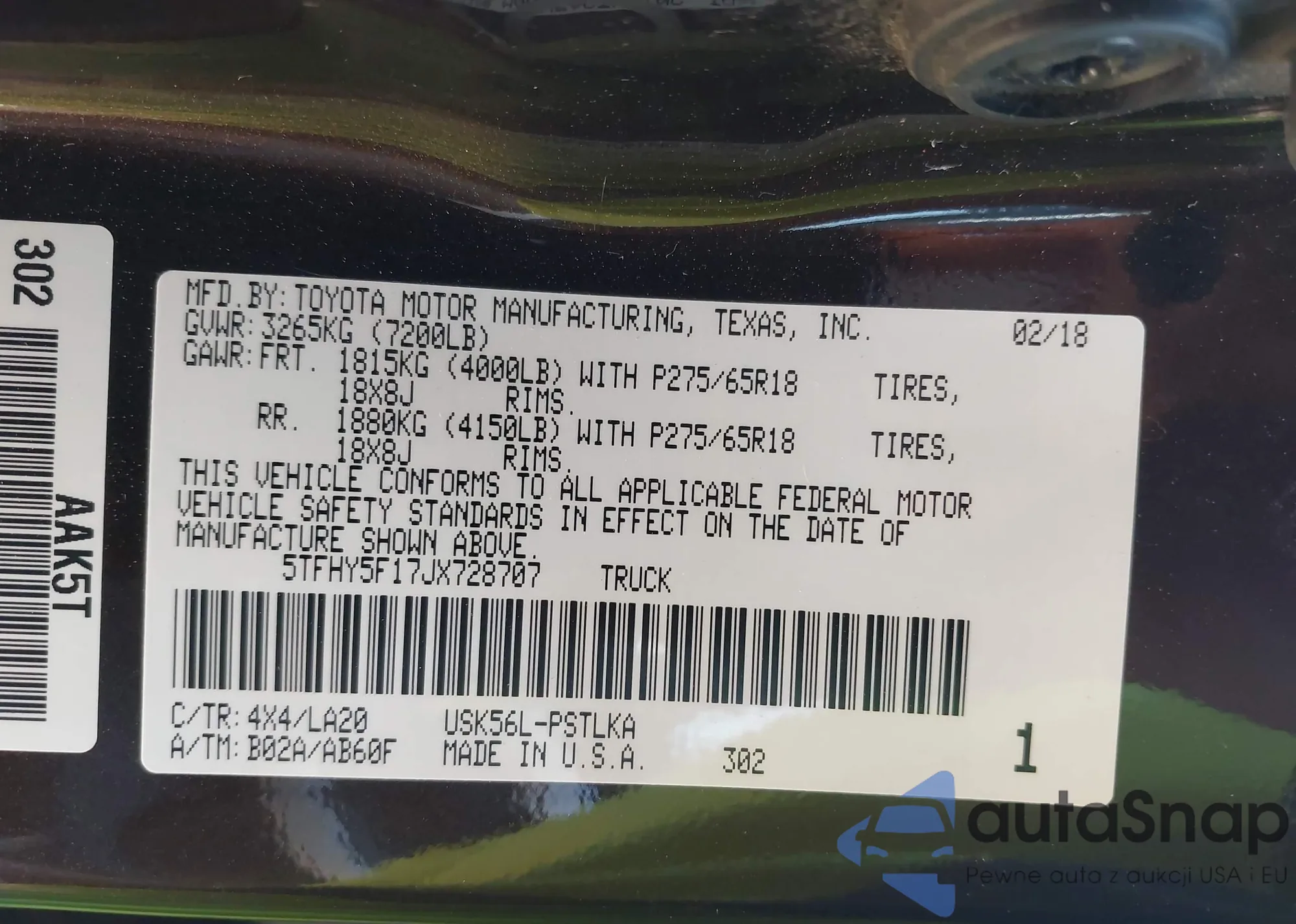 LOT: 42548345 VIN: 5TFHY5F17JX728707