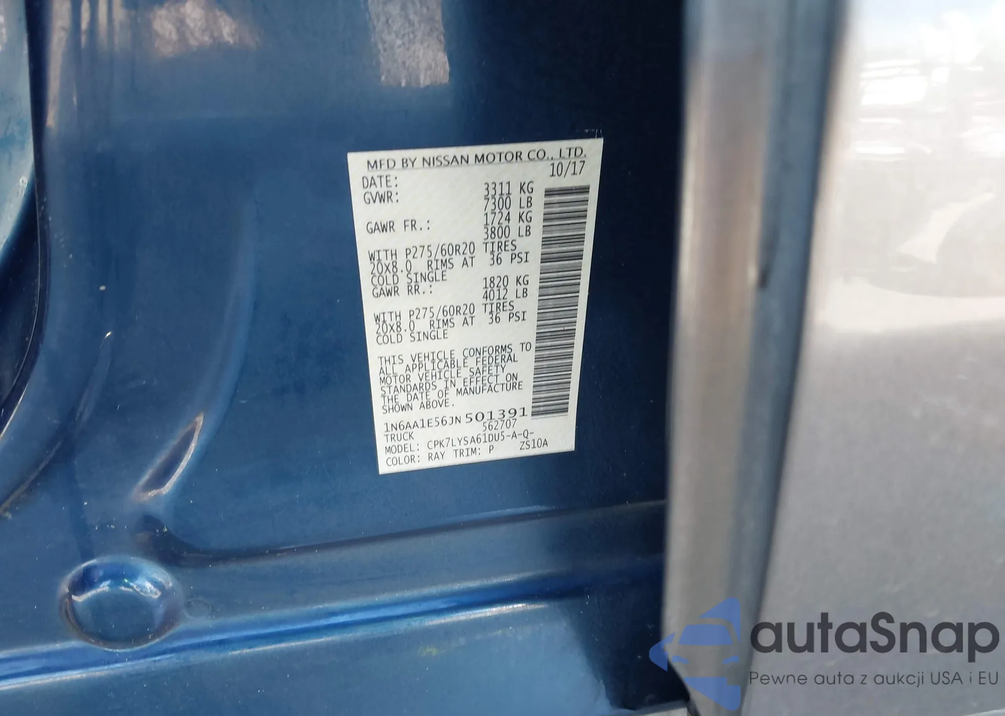 • VIN 1N6AA1E56JN501391