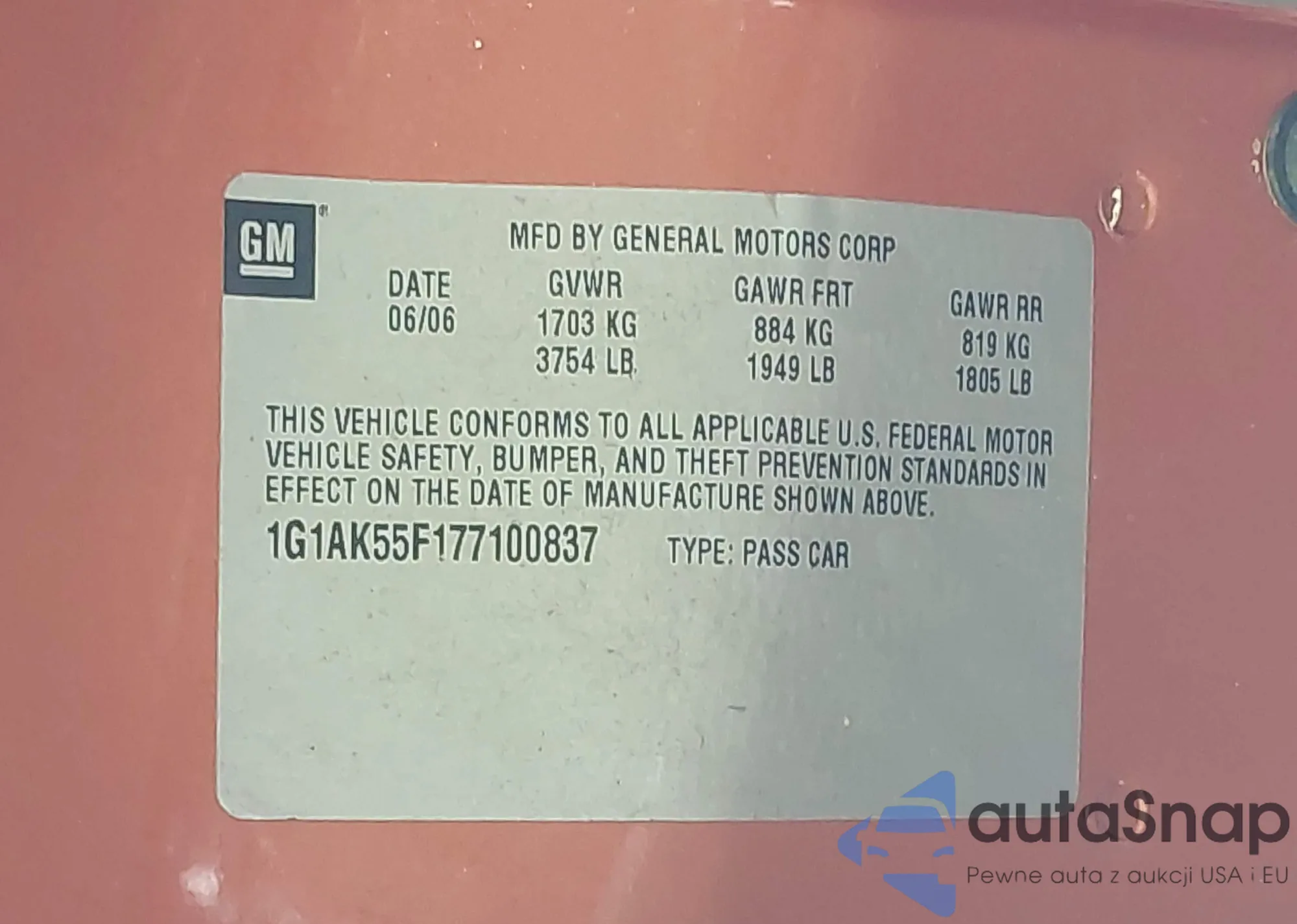 LOT: 42740107 VIN: 1G1AK55F177100837