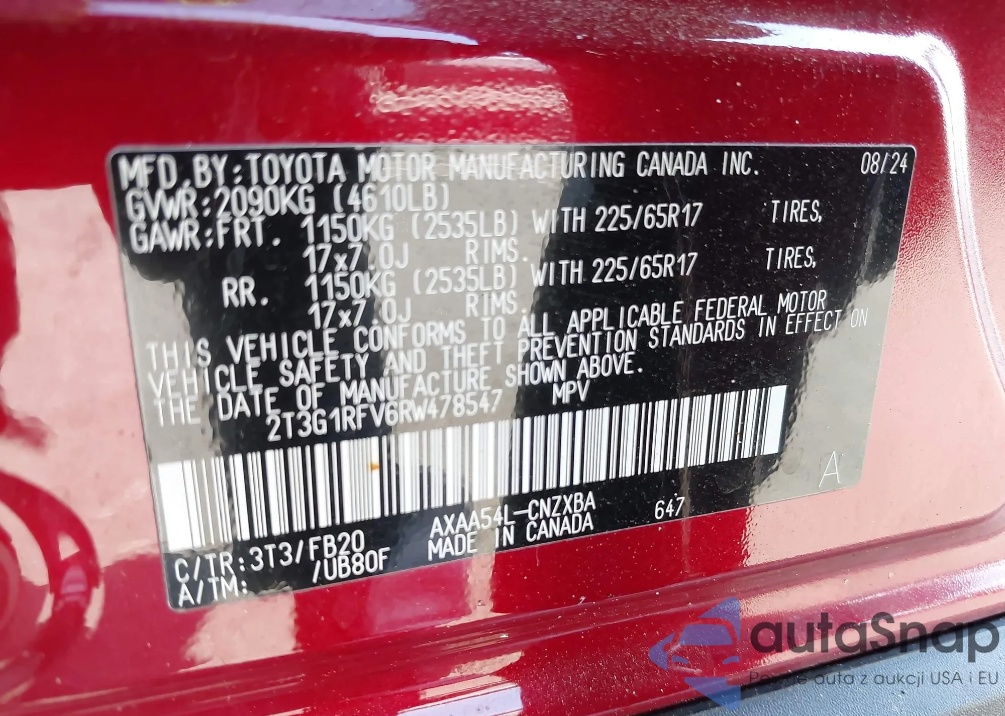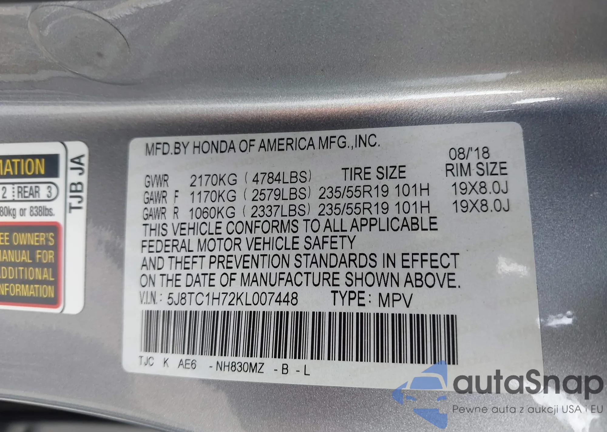 LOT: 42550136 VIN: 5J8TC1H72KL007448