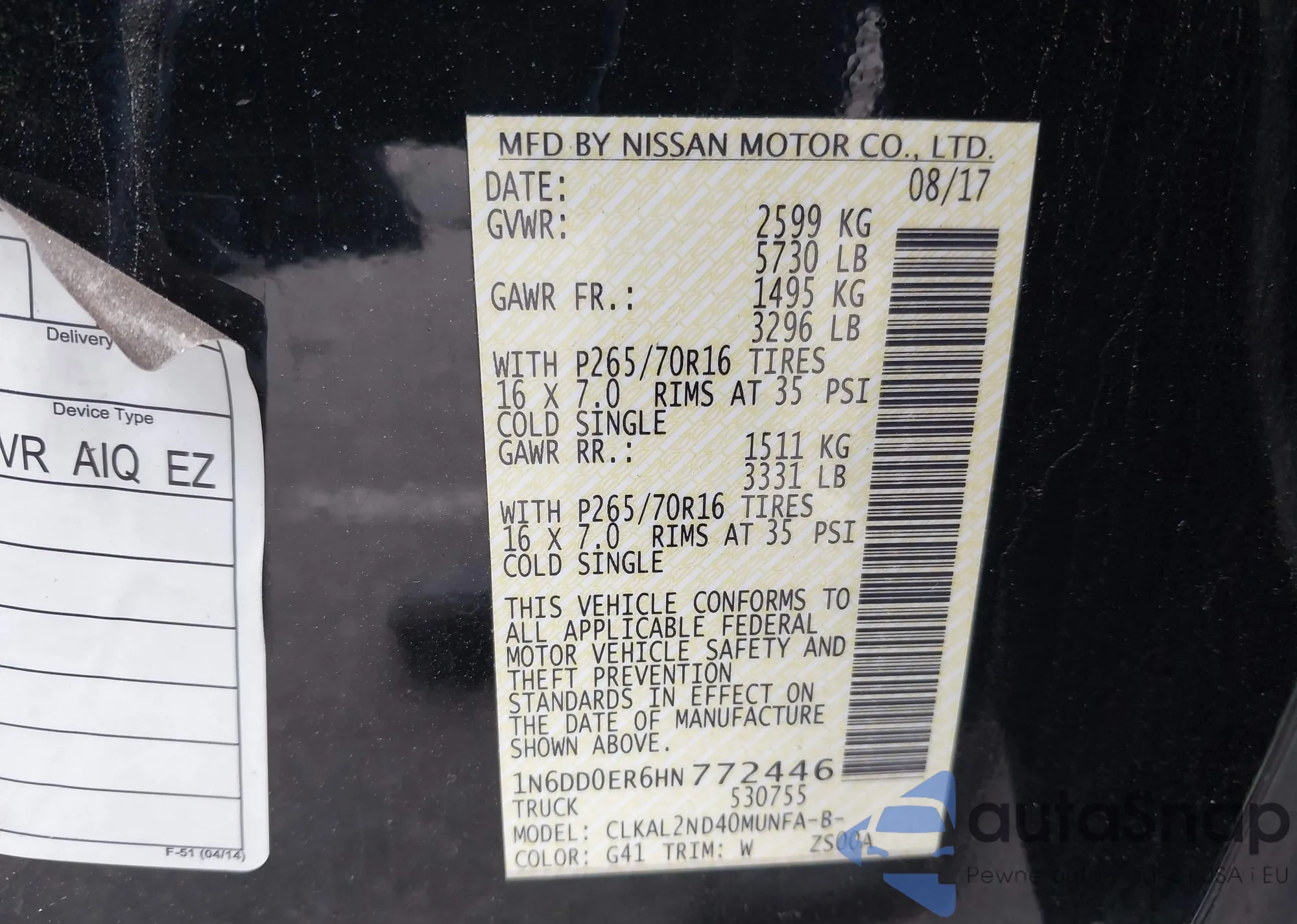 • VIN 1N6DD0ER6HN772446